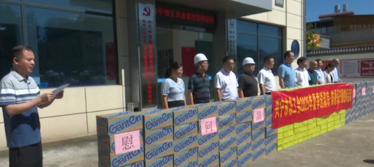 活动中,黄静宏、刘瑞灵为项目建设者们送上了饮品、凉茶、防暑药品等慰问物资,把兴宁市委、市政府和工会组织的关怀送到一线建设者的心坎上。