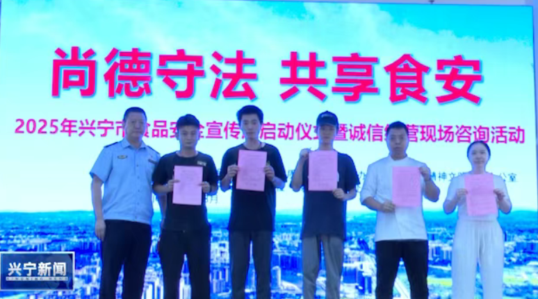 日前,兴宁市在兴一广场举行2025年食品安全宣传周启动仪式暨诚信经营现场咨询活动,本次活动以“尚德守法·共享食安”为主题,通过诚信承诺、科普宣传、惠民检测等多项举措,凝聚政府、企业与市民三方力量,共同筑牢食品安全防线。