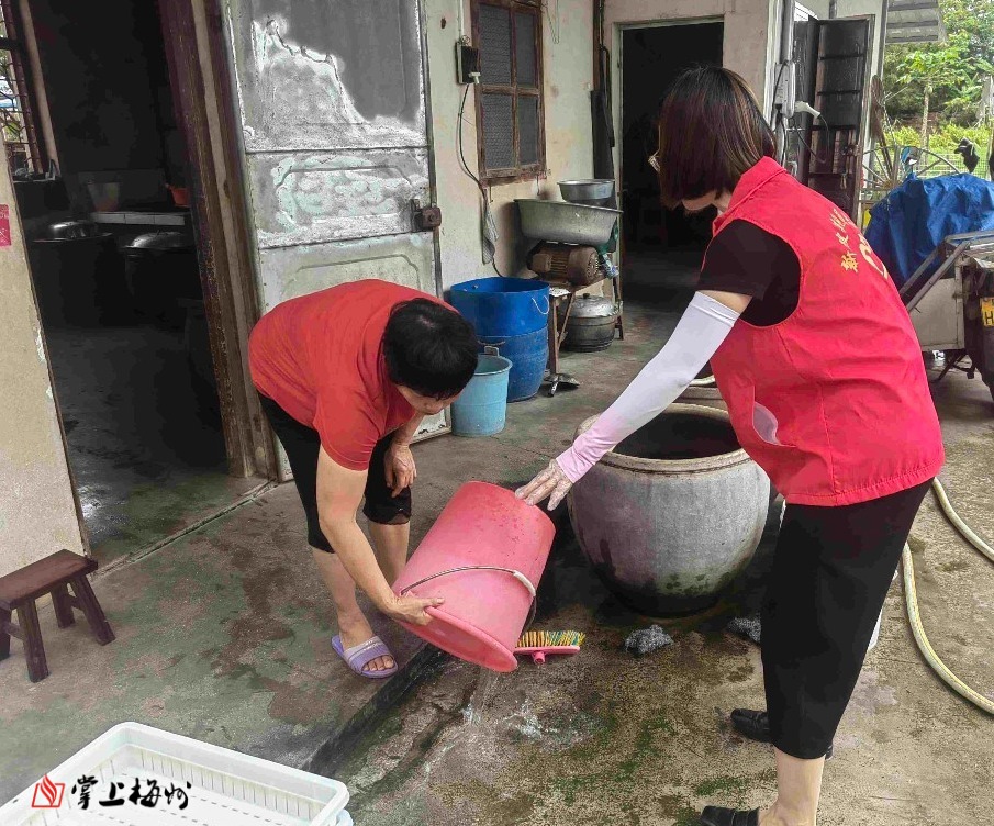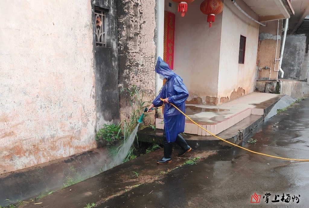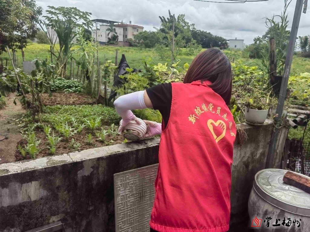 “钟阿姨,您家围墙上这几个花盆托盘里的积水要及时清理,积水和厨余垃圾最容易孳生蚊虫哦。”在兴宁市新陂镇,党员志愿者一边向村民细心宣传讲解清垃圾、清积水、灭蚊虫的防控要点,一边演示翻盆倒罐。