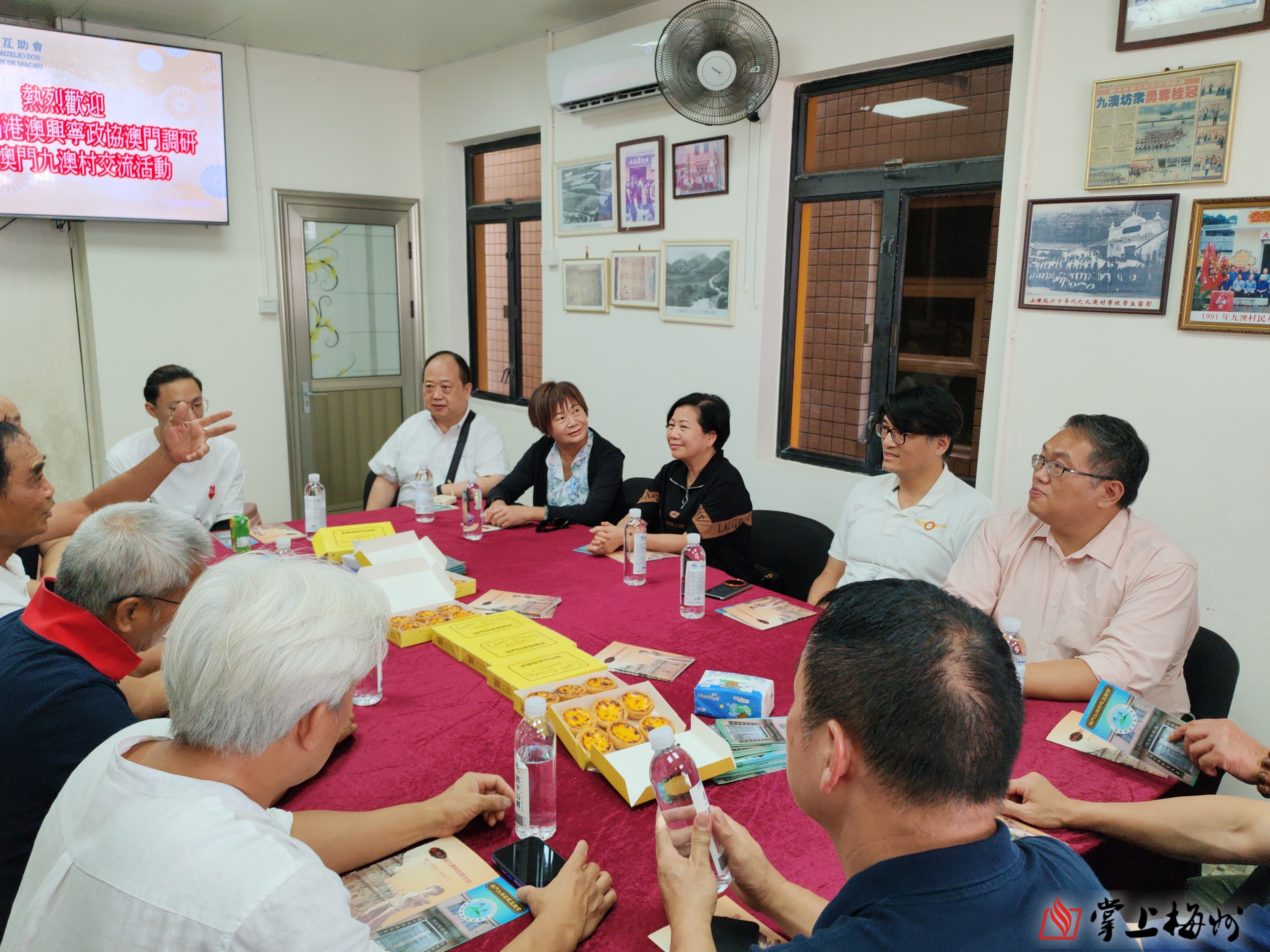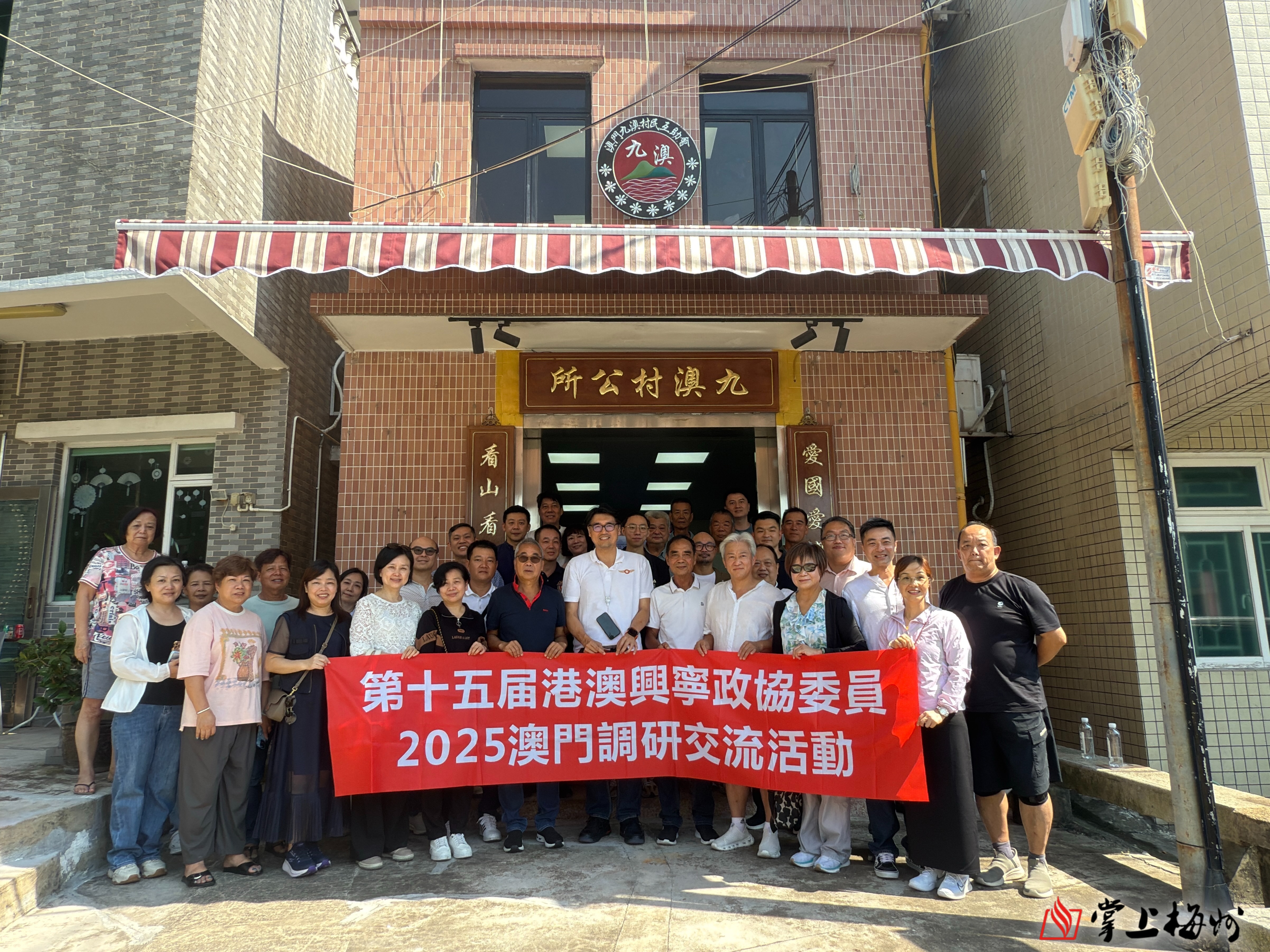 掌上梅州讯 日前,港澳兴宁市政协委员一行27人,前往澳门九澳村拜访九澳村民互助会,九澳村民互助会会长张容福、理事长何容辉、候任理事长钟伟光、监事长张伟福热情迎接并举行座谈交流。
