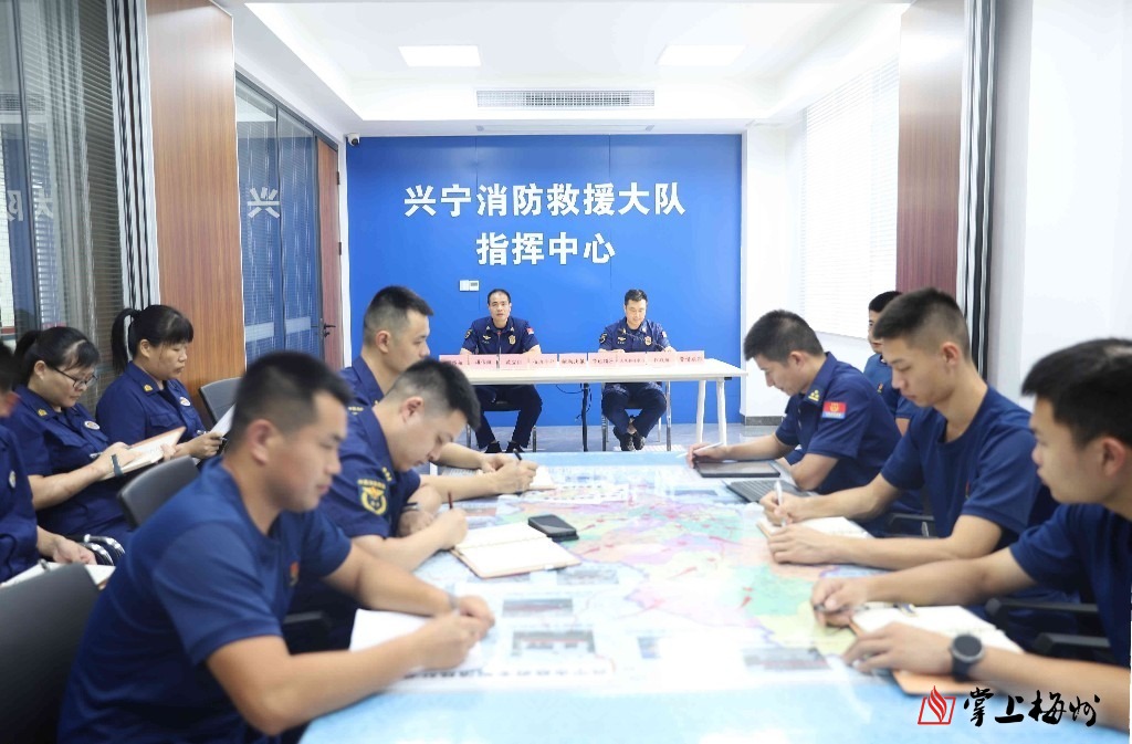 8月13日,兴宁市消防救援大队多措并举迎战台风“杨柳”。大队组织全员干部、指战员及消防文员召开防台风部署会,同步通过视频系统联动各镇(街)专职消防队,构建全域防御网络。