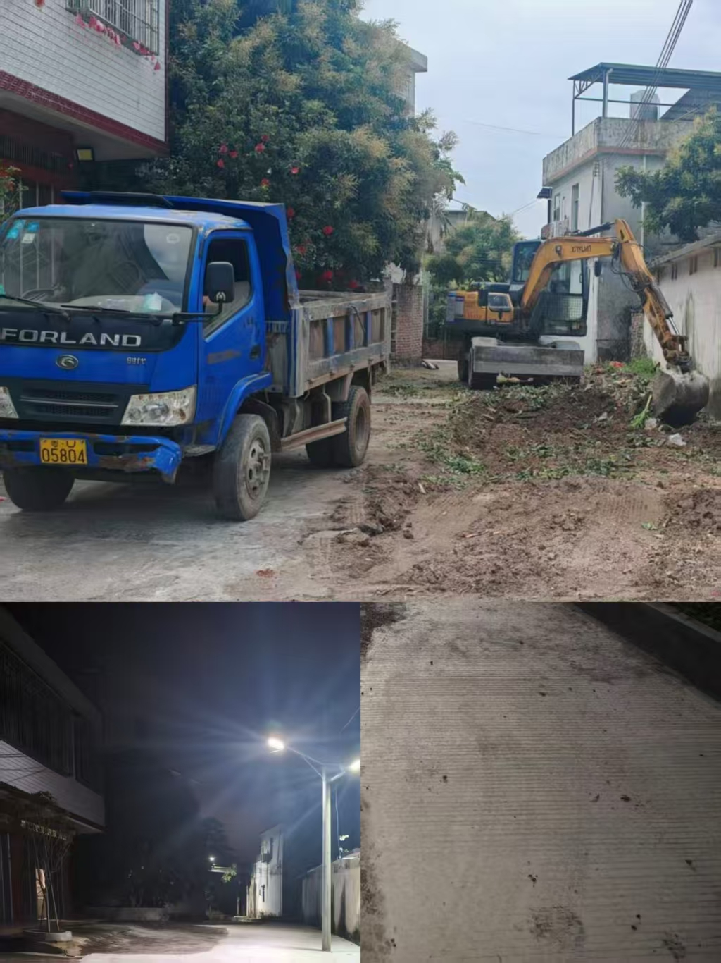 清理只是第一步,如何防止问题回潮才是关键。肖洒协调安排了施工机械和材料,对清理出的空地进行了一场“外科手术”式的改造。搅拌机轰鸣作响,水泥砂浆被均匀地铺设在平整好的土地上,原本坑洼不平的泥地一天之内便蜕变成了一片平整光滑的水泥地。硬底化工程彻底根除了积水泥泞的“病根”。这一举措极大地方便了居民出行,有效清除了蚊媒孳生的温床。