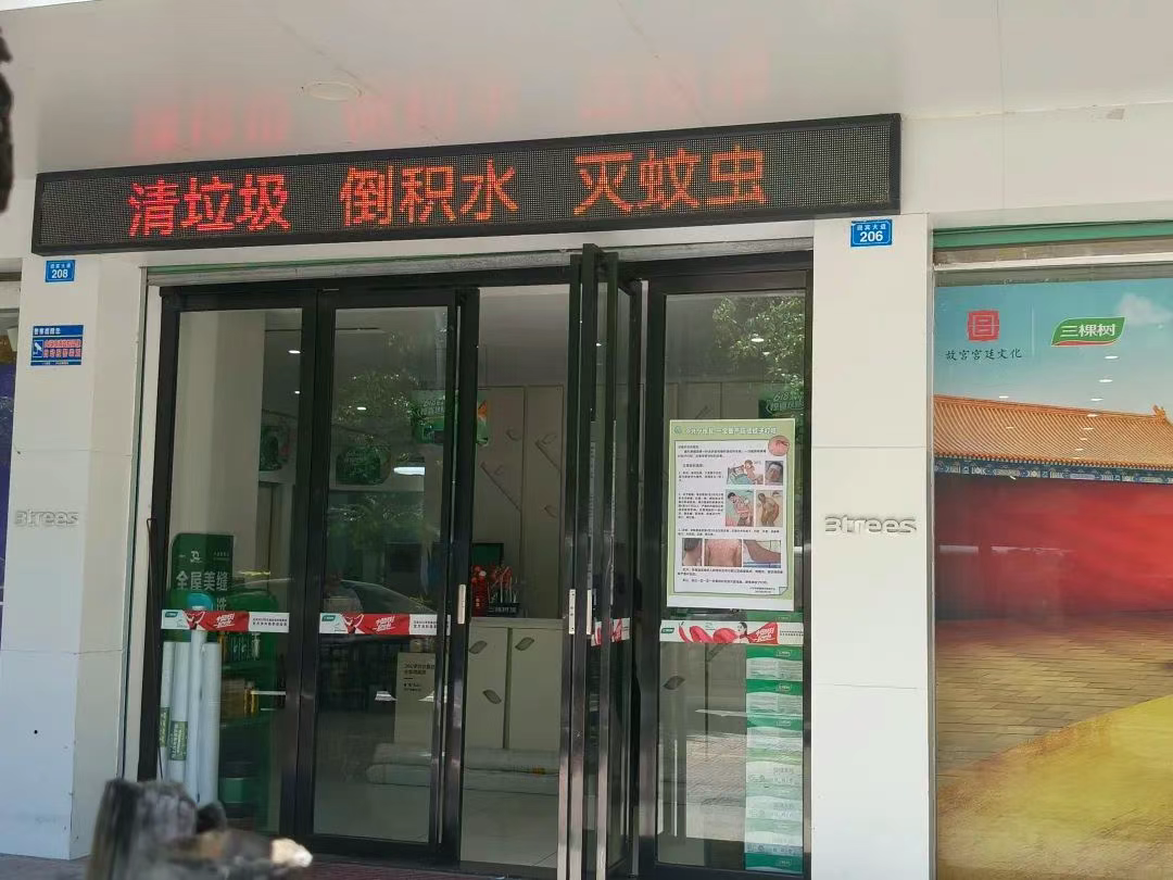 行动中,商家们在各自门店醒目位置张贴有关防控基孔肯雅热的宣传海报,同时在门店上方的电子屏幕上也打出了关于防疫的口号标语,提醒过往群众和顾客科学防护,注意个人防蚊措施。同时,大家对门前及公共区域的积水进行了全面排查和清理,对店内用来装饰的水养花进行移植处理,铲除蚊虫孳生地,并集中清理垃圾,清除杂物,确保公共环境卫生。