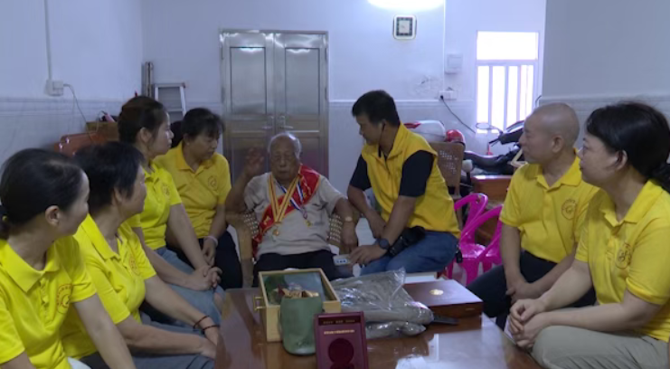 今天上午,兴宁市多位抗战老兵在兴宁市阳光义工协会志愿者的陪同下,在家中观看纪念中国人民抗日战争暨世界反法西斯战争胜利80周年大会现场直播。