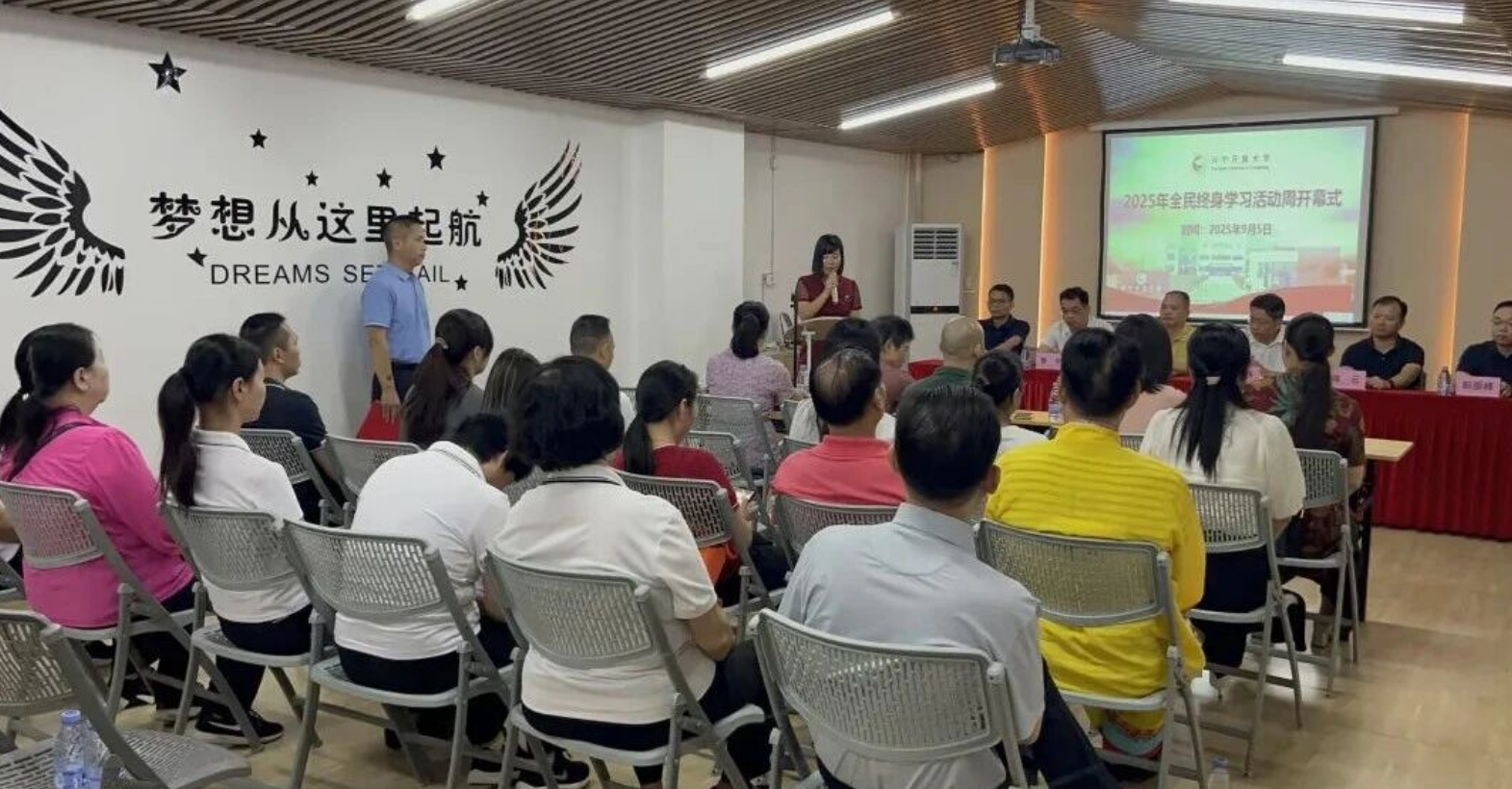 为进一步激活全民学习热情,9月5日,兴宁市在永泰社区党群服务中心举行2025年开放大学全民终身学习周活动启动仪式,本次活动以“让学习成为一种生活方式,让知识赋能美好兴宁”为主题,市教育局、市融媒体中心、市教师发展中心、开放大学及相关社区负责人等出席了启动仪式。