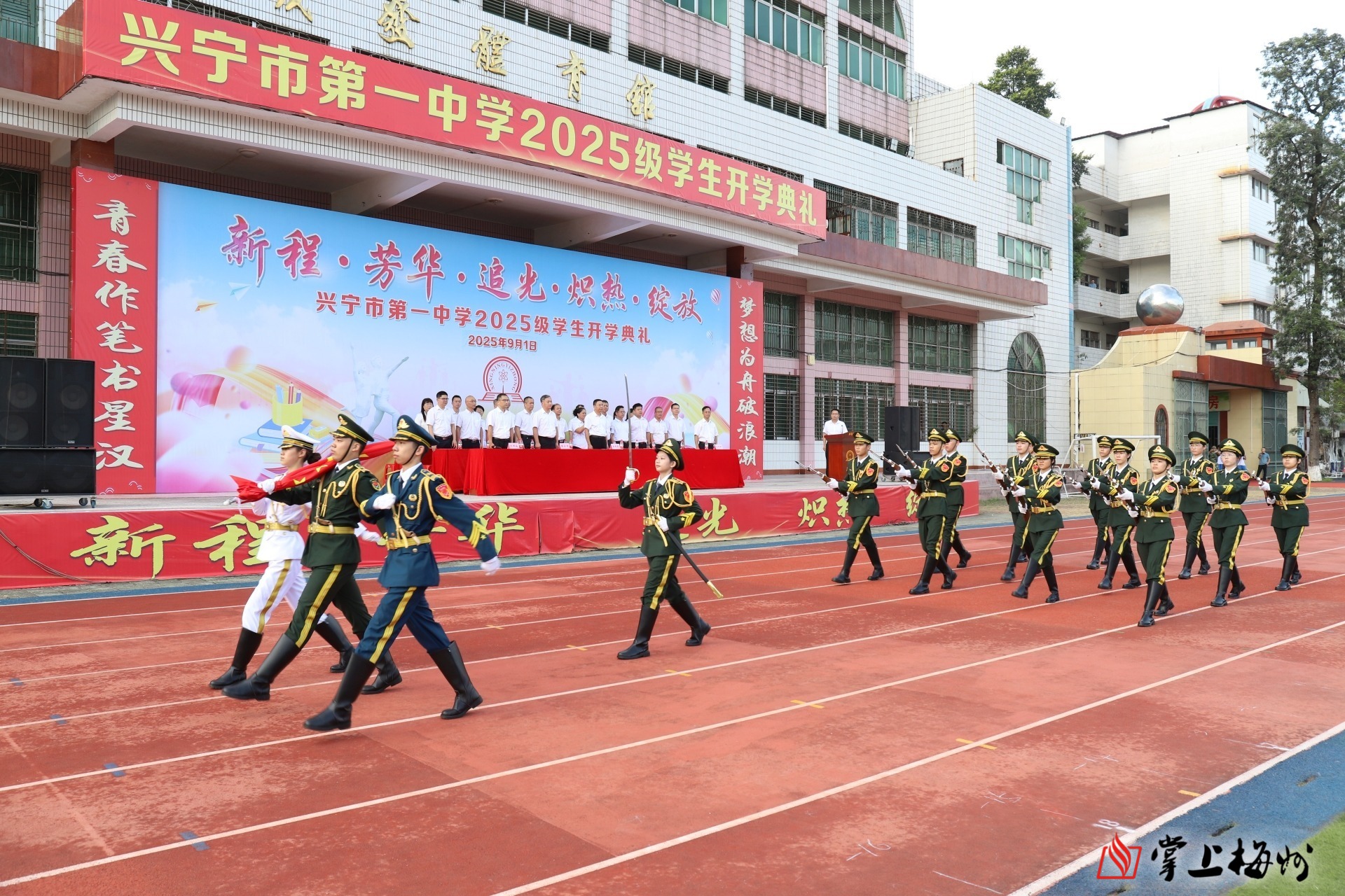 9月1日清晨,兴宁市第一中学运动场上旌旗飘扬,初一、高一年级全体师生齐聚操场,以“新程·芳华·追光·炽热·绽放”为主题举行开学典礼。庄严的升旗仪式后,七年级新生代表发言,尽显少年朝气。教师代表提出构建“学习共同体”,呼吁学生“与同学协作、与教师同行、与时代同频”,将课本知识与现实联结。2025届优秀毕业生返校分享自身经历,鼓励学弟学妹在挫折中找准节奏、培养内驱力。兴宁一中党委书记温鸿葵在讲话中回顾学校“五育并举”的办学传统,以“立大志、勤笃行、持以恒”三点期望,激励学子在一中用青春书写时代新篇。