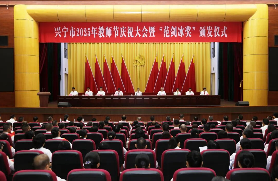 9月10日,兴宁市2025年教师节庆祝大会暨“范剑冰奖”颁发仪式在会展中心举行。会议深入学习贯彻落实习近平总书记关于教育的重要论述,对全市教育战线上的先进典型进行表彰,营造尊师重教的浓厚氛围,动员全市上下共同谱写兴宁教育高质量发展新篇章,全力办好人民满意的教育。兴宁市委书记罗达祥出席活动并讲话。范剑冰奖教基金理事会副理事长范伟出席活动。兴宁市委副书记、政法委书记朱志勇主持活动。