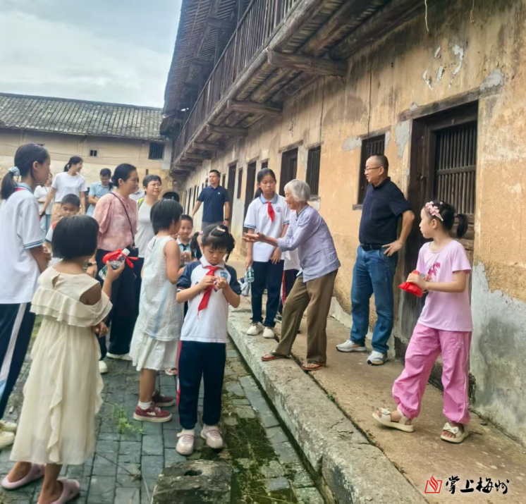 爱心家庭团队一行实地探访了宝宁农牧业养鸽基地,孩子们通过观察乳鸽孵化饲养、听取技术人员讲解,了解现代化鸽子养殖知识。在汤一村的天然温泉取水旁,家住汤一村的王美幸同学作为本土小导游,以硫磺温泉的矿物质特性为引,讲述家乡地质资源禀赋;在兴宁市十大古民居之一的“进士第”,91岁老奶奶拉着孩子们的手,用客家话讲述先辈勤学故事,王宇晴同学当起了实时翻译,让“忠信传家”的文脉传承在稚嫩声音中流淌。