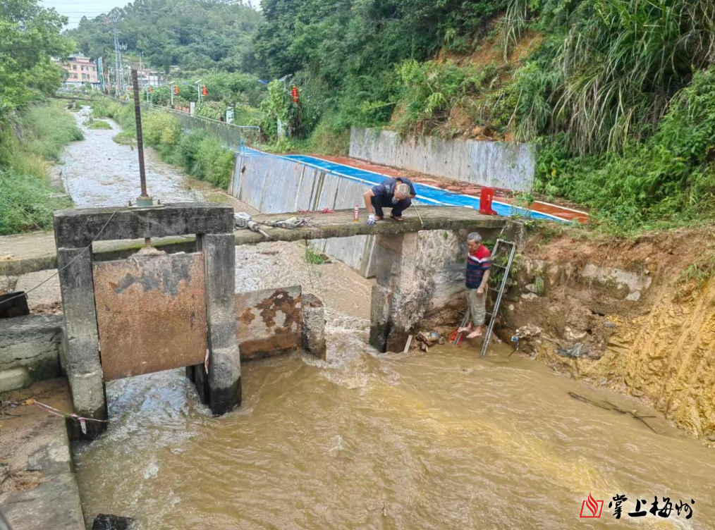 民有所呼,必有所应。镇驻村干部与村“两委”干部立即开展现场勘查,经多次摸排发现,黄坑村陂头水闸因年久失修,闸门控制系统老化,底部淤积泥沙达1.2米,其中一个闸口已无法正常吊起,仅靠一个铁闸门难以满足大雨时段的排水需求,导致水位迅速上涨并引发漫灌路面的情况。