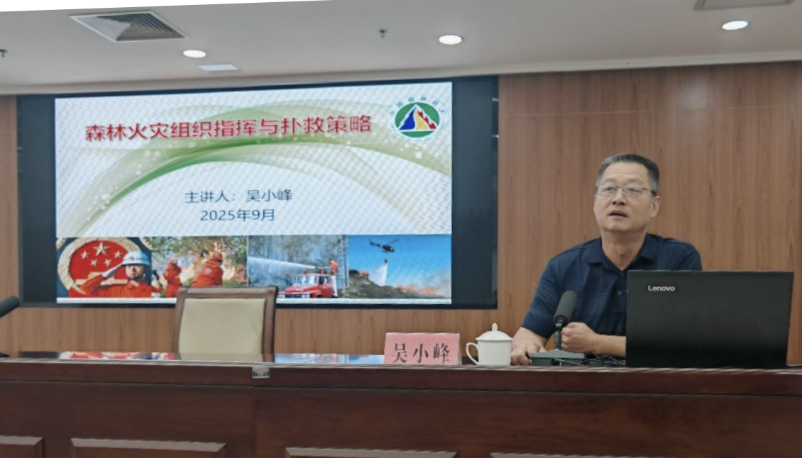 培训旨在进一步提升兴宁市森林防灭火工作的专业化水平和应急处置能力,有效预防和及时扑救森林火灾,保障人民群众生命财产安全和森林资源安全。培训聚焦实战需求精准设置内容,吴小峰结合近年来典型森林火灾案例,重点围绕森林火灾发生的基本知识、森林火灾现场的组织指挥、森林火灾扑救的战略战术三个方面深入讲解火灾成因分析、火情早期识别、应急响应流程及安全避险要点,帮助学员系统掌握“防、扑、救”全链条理论知识。