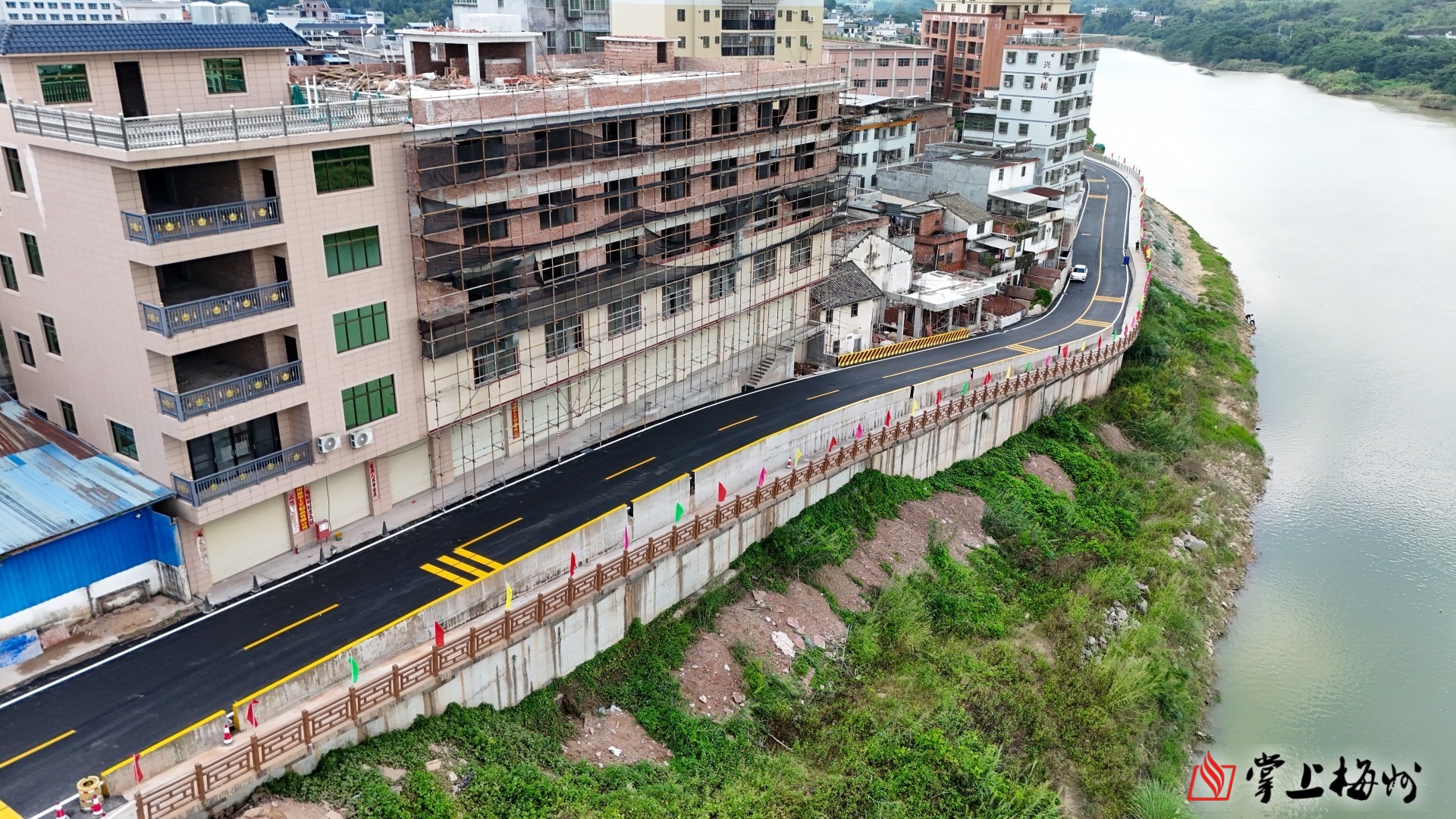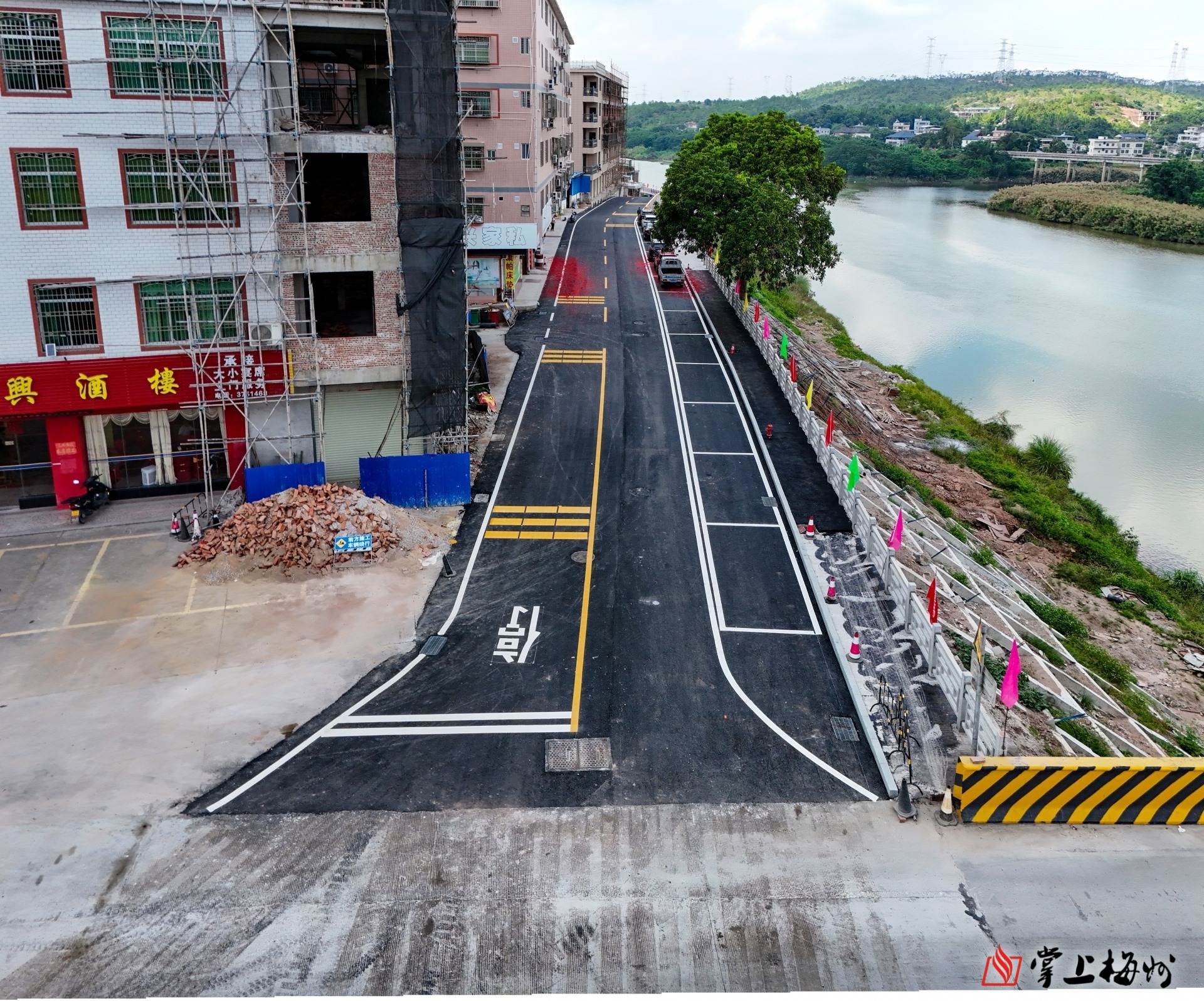 据了解,水口镇美丽河道(堤路结合)项目是集交通、防洪、休闲于一体的综合工程,是水口镇“百千万工程”典型镇建设的重要项目之一,位于梅江河水口二桥至水口公园段,与省道S225线相交。该项目经历届镇党委、政府久久为功,于2024年动工,2025年10月8日通车,10月底完工。河堤路全长426米,采用农村四级公路标准,铺设沥青罩面,路面宽9.15米,其中车行道7.5米,人行辅道1.65米。全线设置雨污分流、美化亮化、停车位等设施。接下来该镇将配套沿线总投资约300万元的水口古码头工程,同时谋划建设沿梅江河连通国道G355线道路,进一步构建内联外畅的城乡交通路网。