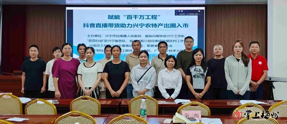为深入推进“百千万工程”,破解兴宁农特产销售难题,近日,广州工程技术职业学院联合省纵向帮扶驻兴宁工作队、“双百行动”驻兴宁服务队等多家单位,在兴宁市径南镇,开展“抖音直播带货助力兴宁农特产出圈入市”专题培训,为当地乡村振兴注入数字新动能。