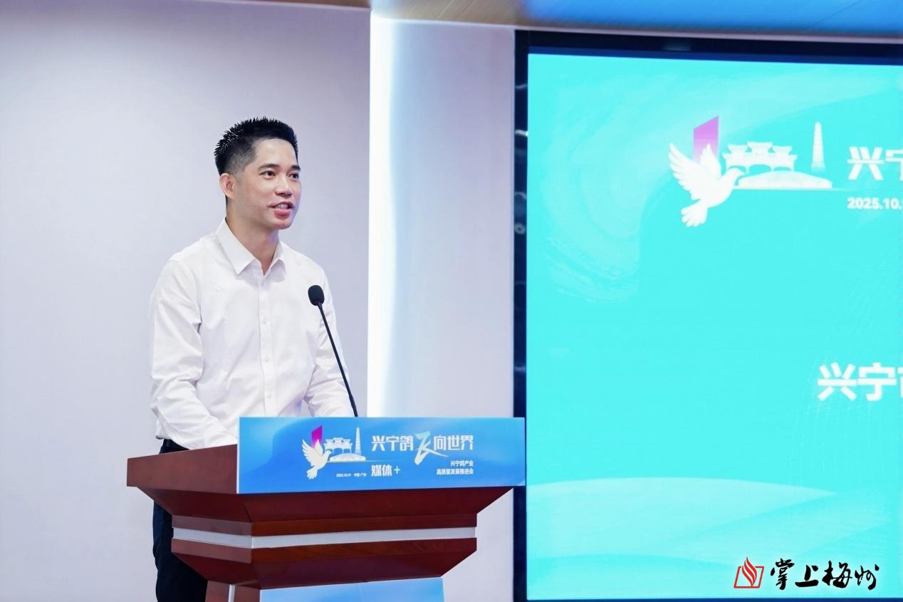 兴宁市委副书记、市政府党组书记、市长赵超文在致辞中表示,今天我们共同见证多项重磅签约与合作启动:从东西部鸽产业协作,到种禽质量检测合作;从领鲜集团落户兴宁,到金绿公司与广州酒家、椰林品牌的强强联手,再到“陈小鸽”与“周黑鸭”联名产品发布;从10位专家的主旨分享,到“媒体+”合作矩阵正式启动,再到兴宁鸽IP形象首次亮相……特别值得一提的是,在数字经济浪潮席卷各行各业的今天,通过“媒体+”深度赋能,打破信息不对称,实现产业链的“去中间化”和“再中间化”,将有力推动兴宁鸽产业从传统养殖到全产业链发展的转型升级,进一步加快兴宁鸽从产品走向产业、从地方走向全国乃至世界的坚实步伐。这些合作与创新,必定如点点星光,照亮兴宁鸽产业发展的未来之路,有效助力我们打造“六个高地”,在3年内培育1-2家国家级农业龙头企业,5年内打造国家级肉鸽产业园、实现全产业链产值50亿元,走出一条县域经济高质量发展的突围之路。