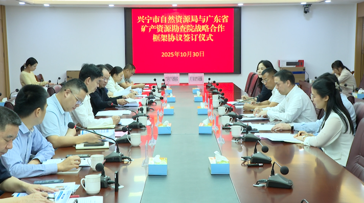 活动中,省矿勘院党委书记陈计中详细介绍了省矿勘院的发展情况,他表示,省矿勘院在矿产勘查、地质灾害治理等领域积累了深厚技术储备与丰富实践经验,此次与兴宁签订战略合作协议,既是积极响应区域经济发展与生态保护协同共进的战略要求,也是省矿勘院发挥专业优势、助力地方发展的责任所在。黄志勇表示,此次合作是一次优势互补、共赢未来的崭新开端,必将有力破解兴宁市资源环境约束,把资源潜力转化为高质量发展动能,为“再造一个新兴宁”贡献更强力量、开创更广前景。