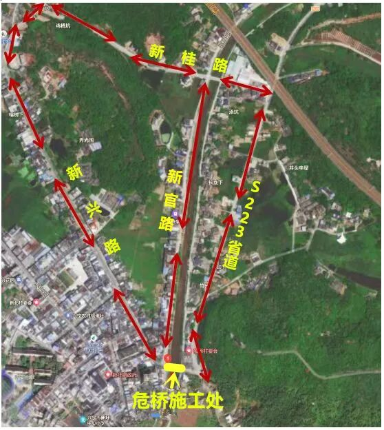 省道S226线兴宁市新圩镇新圩桥经有关部门评定为4类危桥,存在较大的安全隐患,严重影响桥梁的正常通行使用,需拆除重建。新圩桥拆除重建施工期间,整桥全封闭施工,禁止一切车辆及行人通行,给群众出行带来不便,敬请大家谅解并支持。