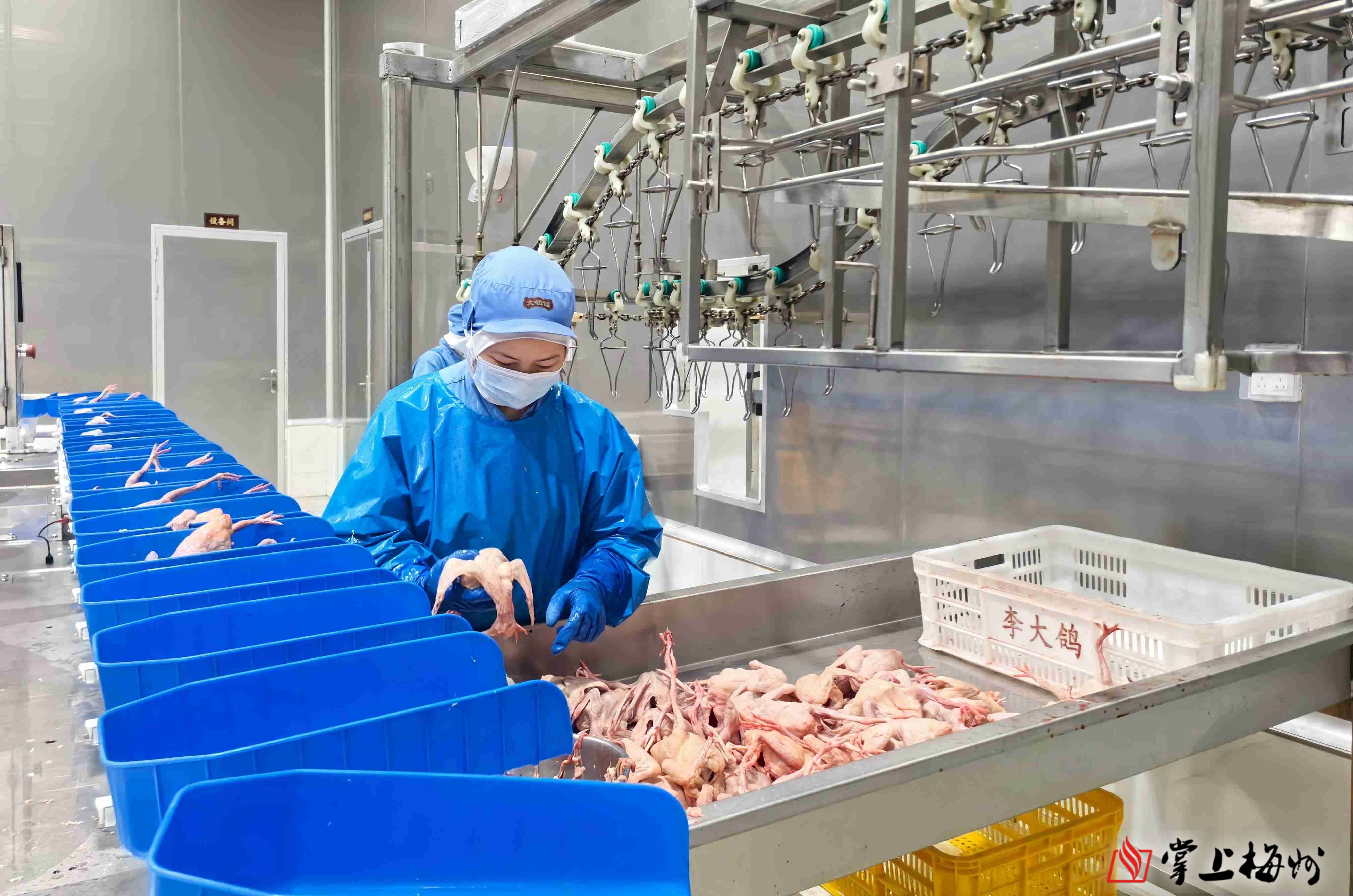 肉鸽产业是兴宁现代农业集群化发展的另一张“王牌”。作为全省首个肉鸽产业优势区,兴宁拥有广东最大的肉鸽屠宰基地、集散地和以肉鸽为主导产业的全国农业产业强镇。在广东宝宁农牧科技有限公司的“大鸽饭”鲜鸽加工基地,标准化的屠宰、清洗、分割、包装生产线高效运转。“我们通过延伸产业链、提升附加值,让一只鸽子从养殖到餐桌实现价值最大化,既带动了农民增收,也打响了‘兴宁鸽’的品牌。” 宝宁农牧负责人袁秋霞介绍道,该公司已拥有2个生产基地、种鸽存栏20多万对,年上市肉鸽400多万羽,产值超1亿元。