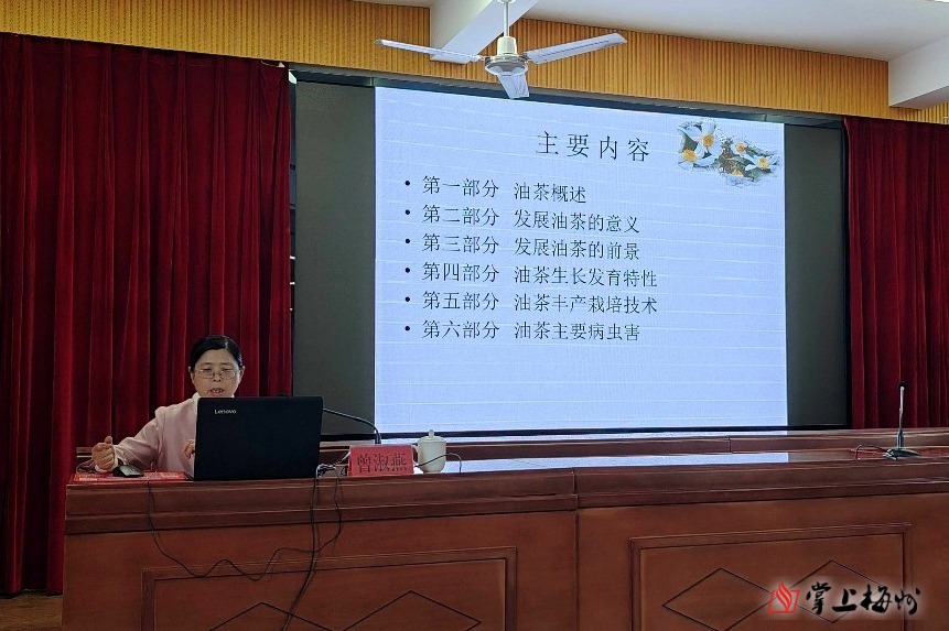 培训旨在破解油茶种植户在生产中遇到的技术难题,推动油茶产业提质增效,助力乡村振兴战略落地见效。培训会上,曾淑燕教授结合多年科研与实践经验,围绕油茶生长发育特性、丰产栽培关键技术、主要病虫害绿色防控等核心内容展开详细讲解。针对种植户关心的品种选择、整地定植、修剪整形、水肥管理等实操问题,曾淑燕教授通过图文结合、案例分析的方式深入浅出拆解要点。同时对油茶常见的炭疽病、尺蠖等病虫害,现场传授识别方法与物理防治、生物防治相结合的科学方案,确保参训人员听得懂、学得会、用得上。互动交流环节中,种植户们踊跃提问,教授逐一耐心答疑,现场学习氛围浓厚。