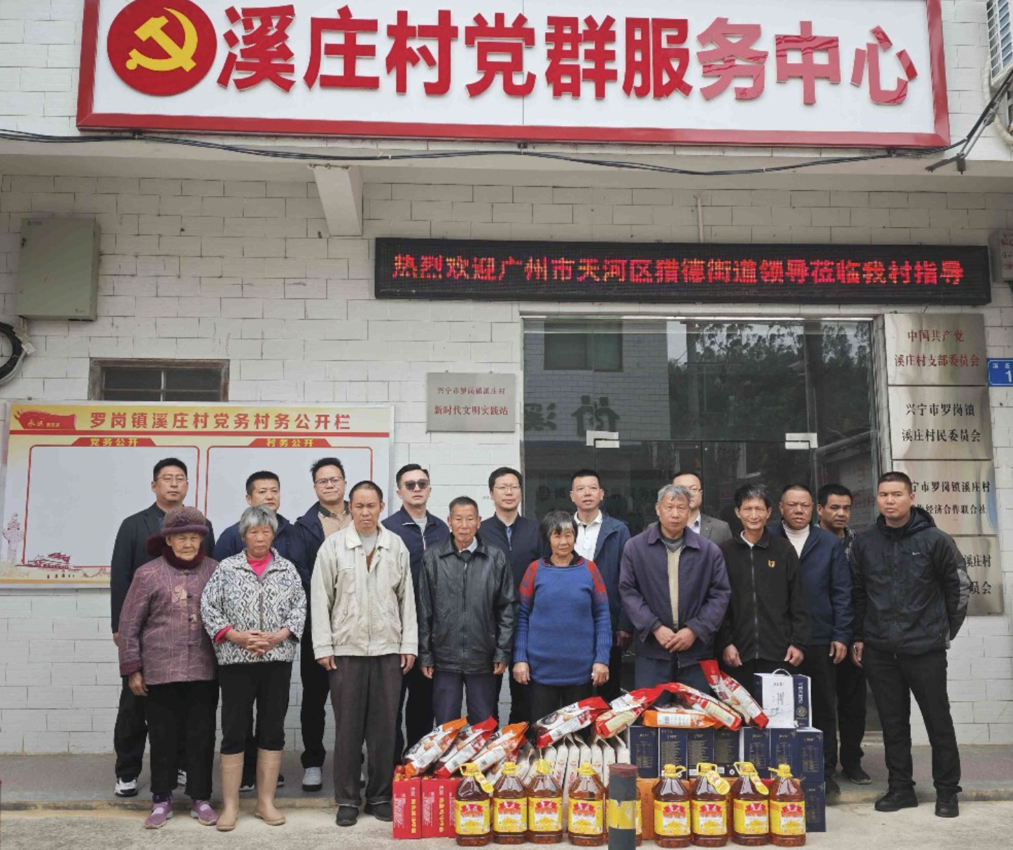 日前,广州市天河区猎德街道党工委副书记、办事处主任廖礼金,冼村街道党工委副书记、办事处主任冯海涛率调研组一行,联合广州猎德商会、广州银行、冼村街道平安促进会理事单位代表、冼村街道新经济组织联合会、广州丰硕乡村促进会等,赴兴宁市罗岗镇开展联合调研、座谈交流、走访慰问等系列对口帮扶活动。以政企协同、街镇联动凝聚帮扶合力,精准对接罗岗镇发展需求,共同探索区域协作与乡村振兴新路径。
