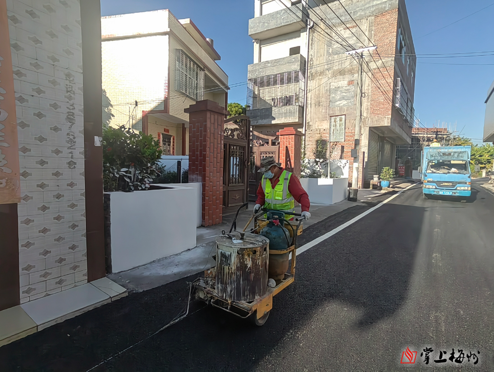 昔日露天的三新村文体广场,如今工人们则在进行地基浇筑等工作,这里将会被改造成为有光伏顶棚遮风挡雨、夜晚亮灯照明的“全天候”运动空间。经过连日的紧张施工,主村道1公里多长的全新柏油路也已铺设完成,工人们正用热熔划线车对路面画出标线,进一步完善道路通行功能,提升乡村“颜值”,让村民出行变得更安全、更舒心。