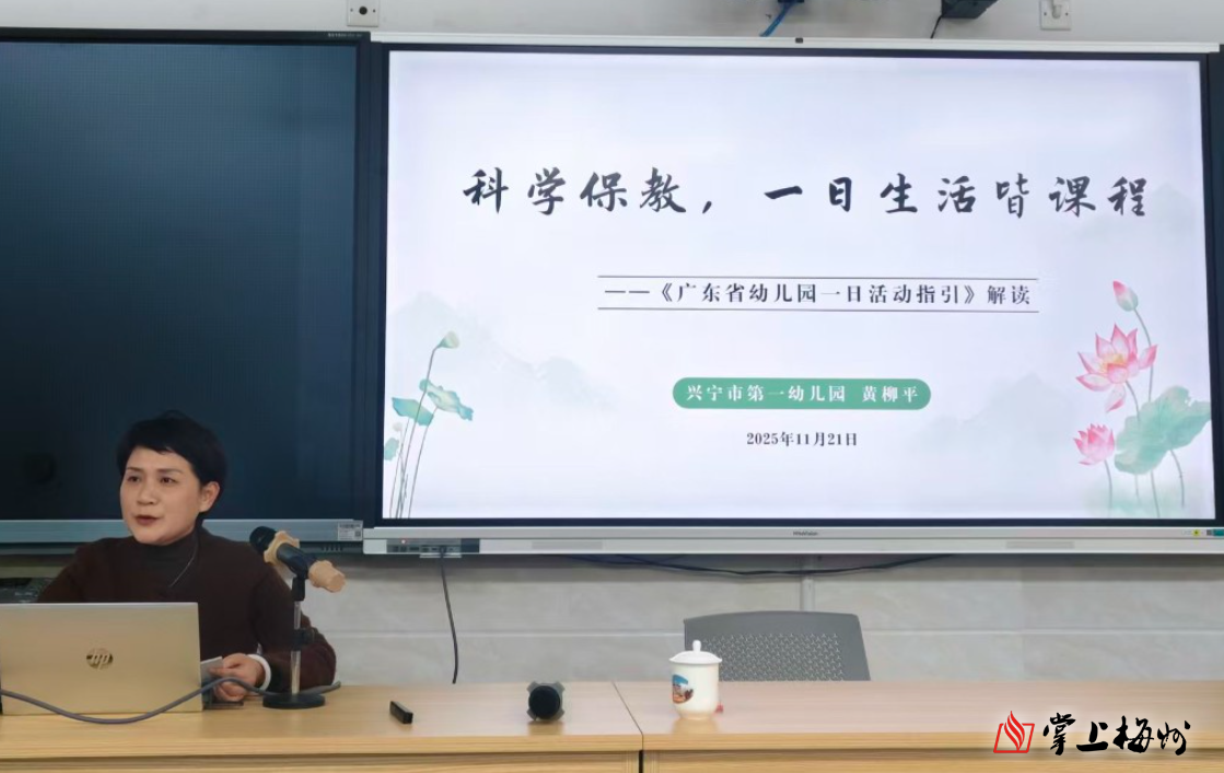 随后,兴宁市第一幼儿园园长黄柳平围绕“科学保教,一日生活皆课程”的主题,分享了该园在保教实践中的宝贵经验与丰硕成果。她从晨间活动、集体教育活动、户外锻炼到生活环节,系统阐述了如何依据幼儿的年龄特点与发展规律,科学、合理地规划与组织一日在园生活,将教育目标自然渗透于各个环节,真正实现“生活即教育”,促进幼儿全面而富有个性地发展。其分享的内容具体、方法实用,为各园优化保教实践提供了有益借鉴。