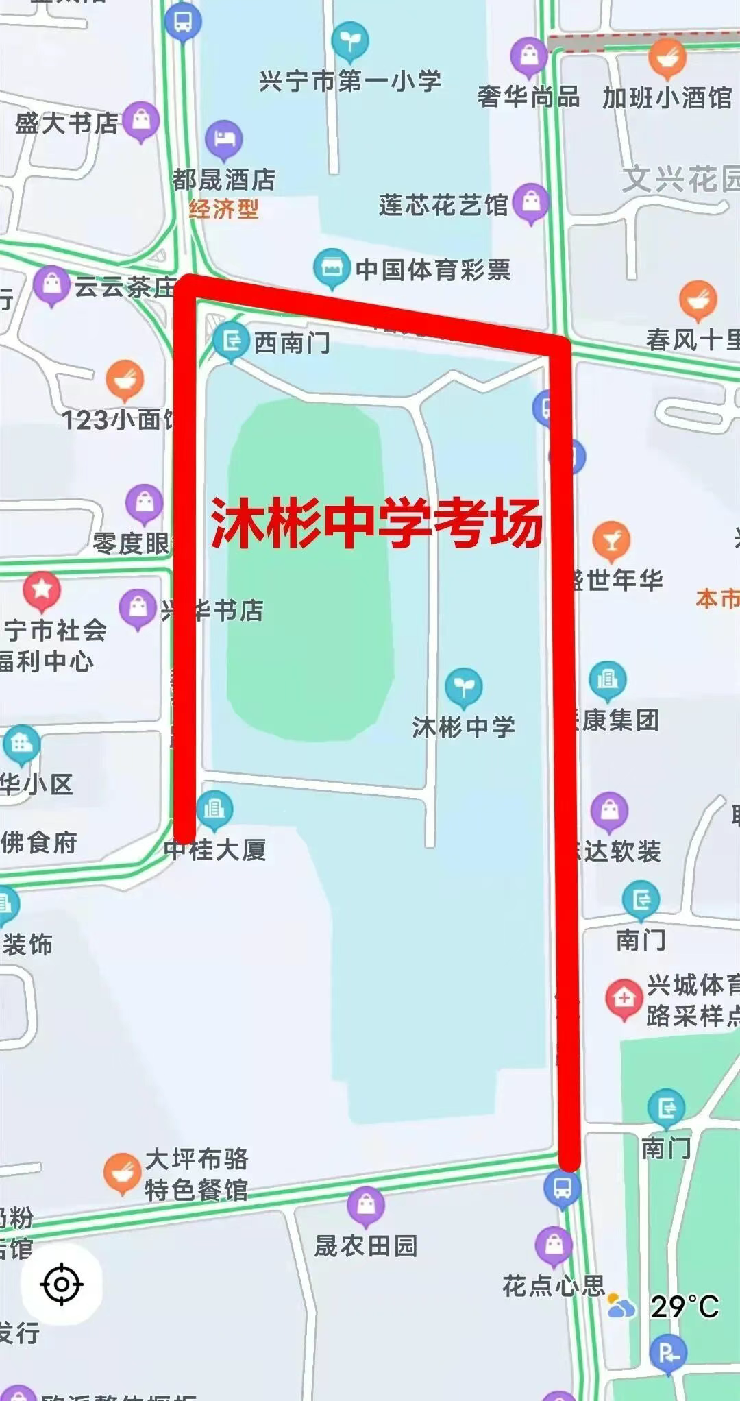 ▲沐彬中学考场周边红色路段为临时交通管制路段▲
