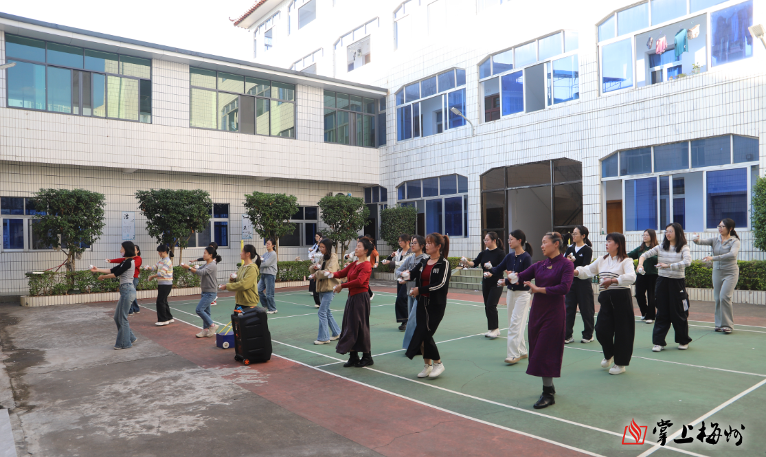 掌上梅州讯 12月9日下午,兴宁市罗岗镇人民政府大院里杯声清脆,由罗岗镇党委、政府主办的罗岗镇杯花舞非遗传承班正式开班。来自该镇机关的青年女干部及杯花舞群众爱好者共60余名学员齐聚一堂,在省级非遗杯花舞专业人员的带领下,开启杯花舞研学,同时也拉开了罗岗镇“百千万工程”文化惠民系列活动的序幕。