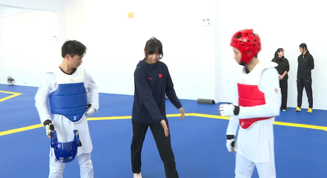 活动中,张楚玲对跆拳道队员们的日常训练进行了交流指导,特别示范了动作要领,并结合自身实战经验为队员们提供了具体建议。