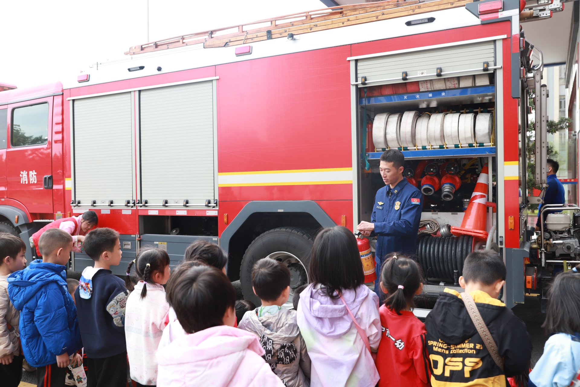 小朋友们走进消防队近距离参观消防车和各类消防器材