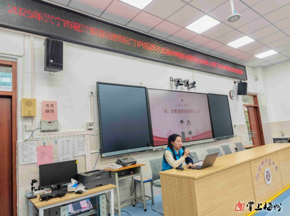 日前,兴宁市福兴街道党工委、办事处组织该街道未成年人保护工作站、社会工作服务站、社会工作与志愿服务协会妇女联合会,走进兴宁市齐昌中学举行以“守护校园零伤害·筑牢青春安全盾”为主题的“防校园欺凌”“防性侵”安全教育讲座。