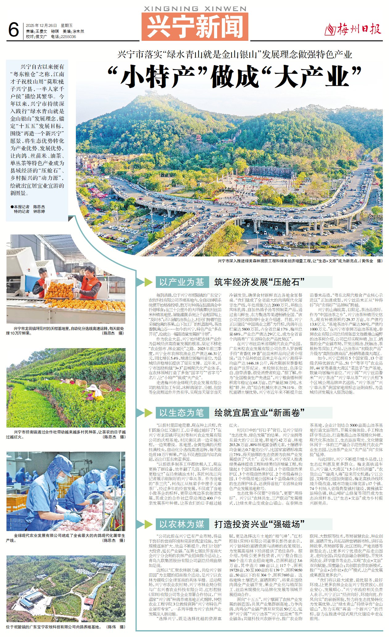 “我们将以最大诚意、最优服务、最好环境,让更多农林企业在兴宁投资放心、创业安心、发展顺心。”兴宁市政府相关负责人表示,兴宁正以“经济向好、环境向优、作风向实”的崭新面貌,努力将生态优势转化为发展优势,让“绿水青山”持续孕育“金山银山”,努力实现“再造一个新兴宁”的目标,奋力在推进中国式现代化建设中走在前列。