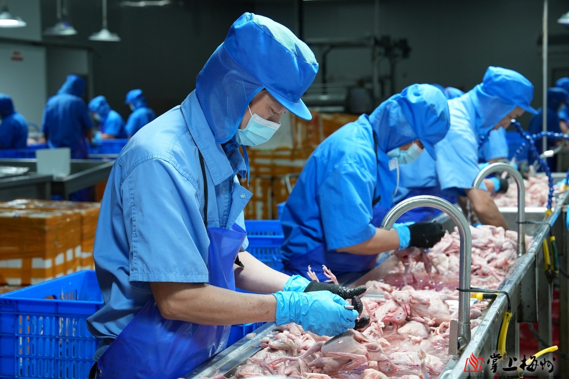 金绿现代农业发展有限公司建成了全省最大的肉鸽现代化屠宰生产线。(陈思杰 摄)