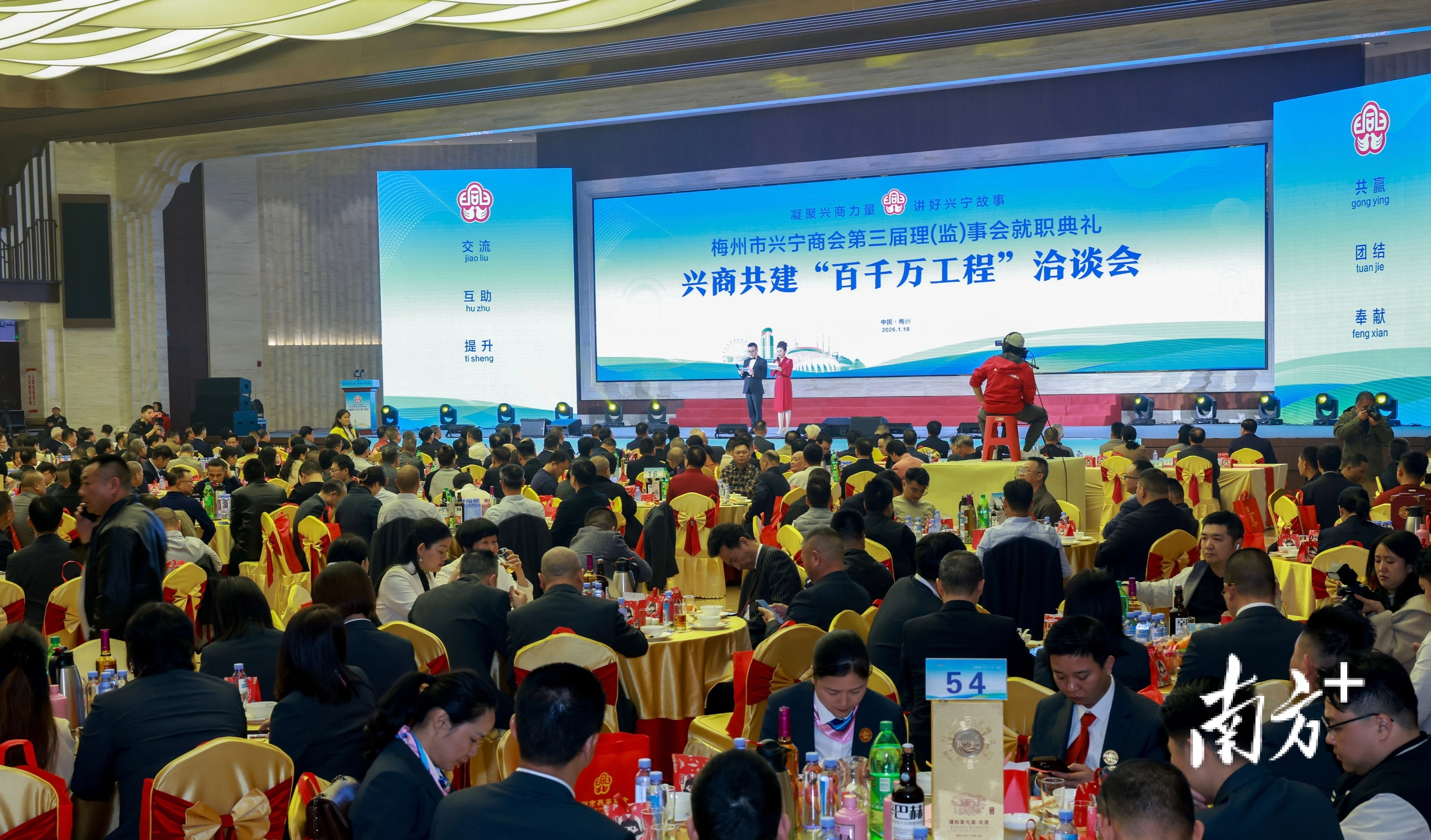 骏马献瑞启新程,同心聚力兴家乡。1月18日晚,梅州市兴宁商会第三届理(监)事会就职典礼暨兴商共建“百千万工程”洽谈会举行。来自海内外的700多位政商学界嘉宾、社会贤达代表齐聚一堂,共同见证商会发展新起点,共商兴宁高质量发展大计。广东省原省长黄华华发来贺信,为商会发展寄予殷切期望。