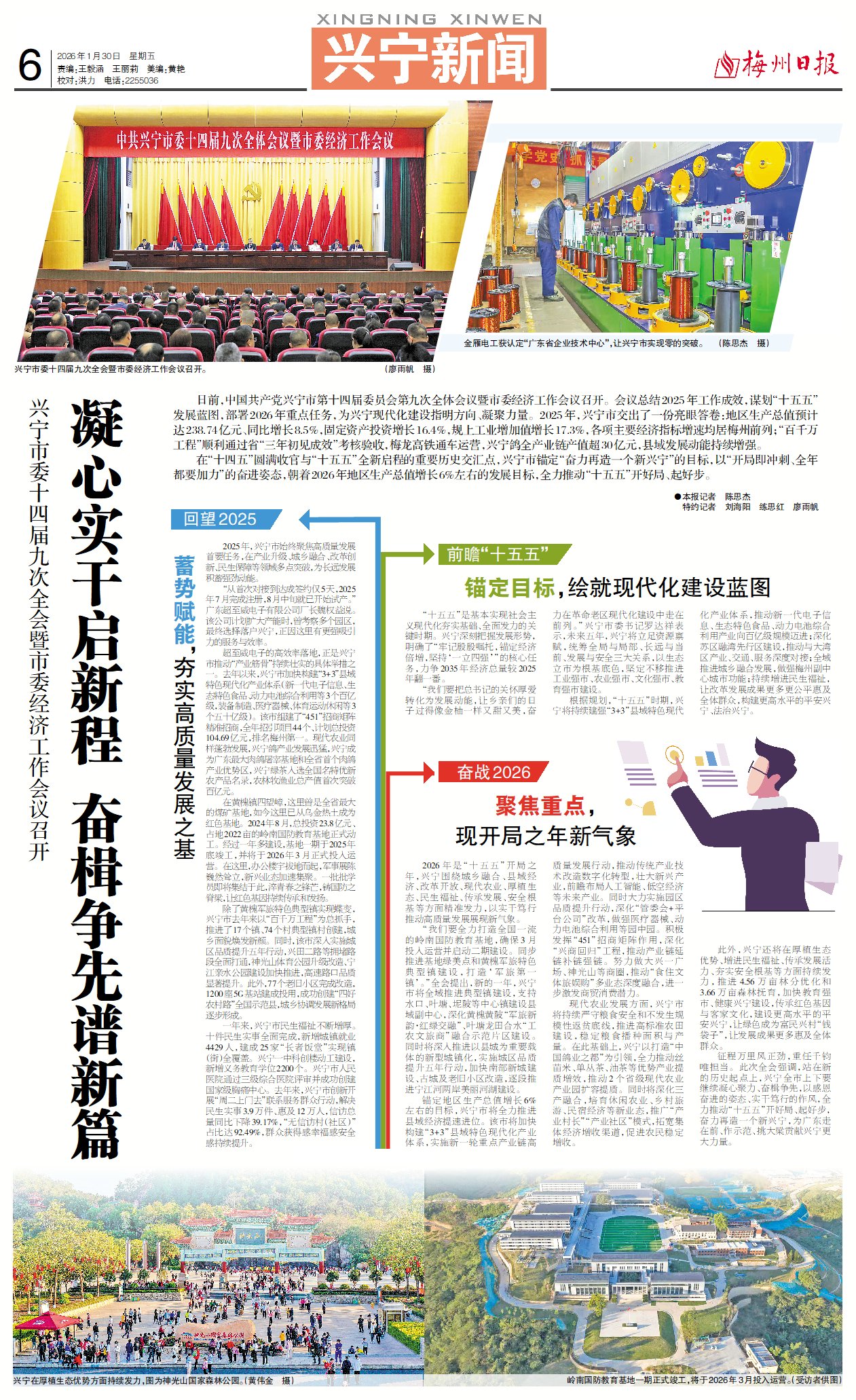 在“十四五”圆满收官与“十五五”全新启程的重要历史交汇点,兴宁市锚定“奋力再造一个新兴宁”的目标,以“开局即冲刺、全年都要加力”的奋进姿态,朝着2026年地区生产总值增长6%左右的发展目标,全力推动“十五五”开好局、起好步。