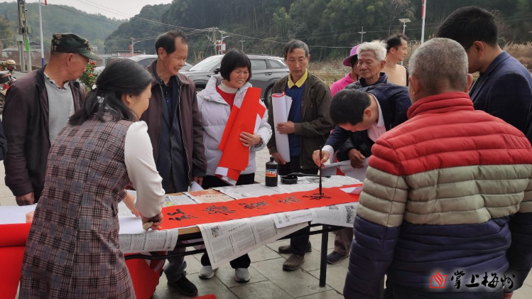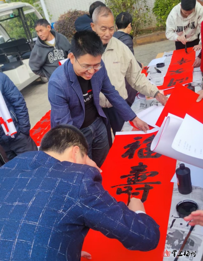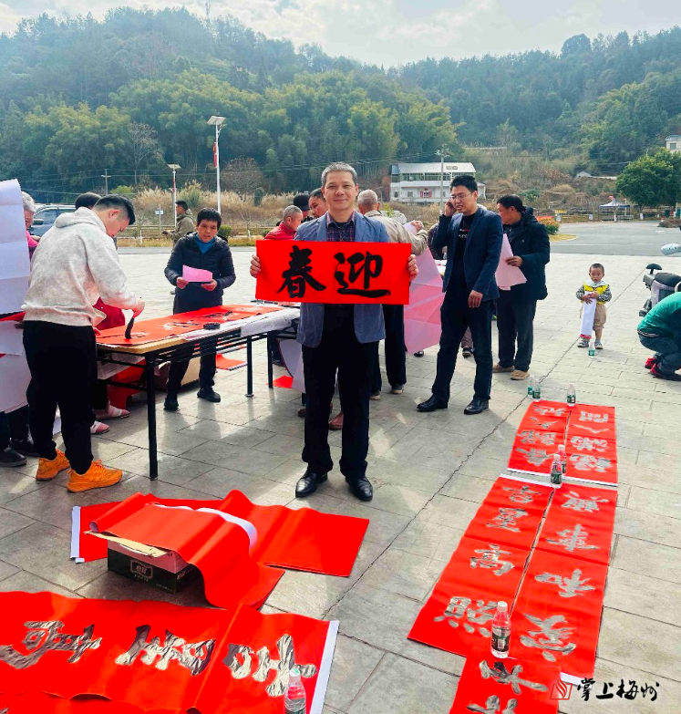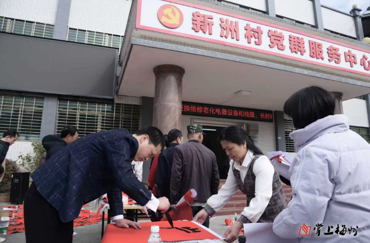 掌上梅州讯 日前,兴宁市径南镇联合驻镇帮镇扶村工作队,在新洲村新时代文明实践站组织开展“笔墨传情·福暖新洲”迎新春送春联文化惠民活动。活动特邀中国硬笔书法协会会员周小伟、谈大辉等现场挥毫,以笔墨传递祝福,以文化温润乡村。活动旨在进一步弘扬中华优秀传统文化,丰富群众精神文化生活,营造喜庆祥和的节日氛围。