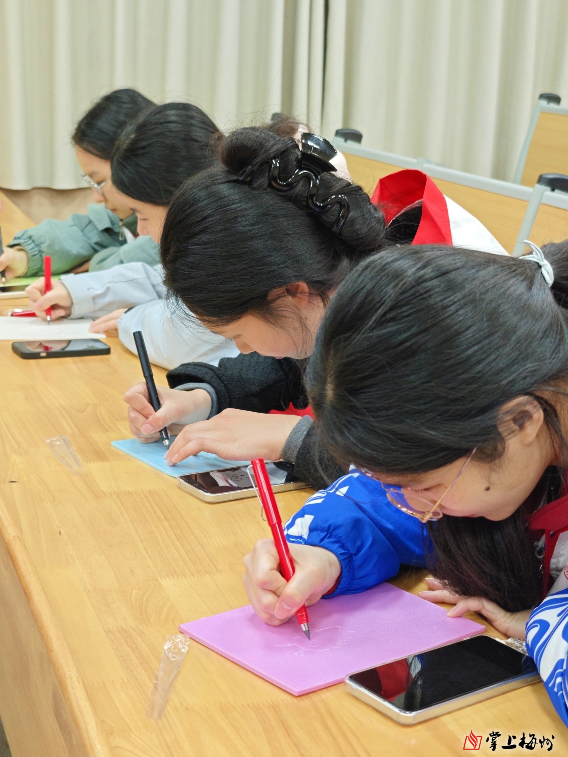 植树活动结束后,兴宁版画非遗体验课程随即温情开启。青年们围聚一堂,紧跟非遗传承匠人的脚步,执刀雕版、蘸墨拓印,指尖流转间,将绿美广东的盎然生机、青年投身生态建设的满腔热忱,一点点凝刻于木、拓印于纸。每一幅版画都藏着青春的热爱与坚守,每一道纹路都承载着非遗的底蕴与希望,青年们在沉浸式体验中品味匠心、传承技艺,让青春力量与文化传承同频共振,让绿色理念与非遗文化深深扎根心底。