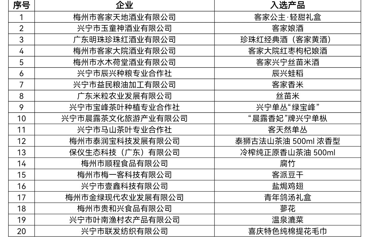 入选产品涵盖了客家酒品、特色粮油(含健康山茶油)、传统小吃、休闲食品及手工艺品等多个类别,充分体现了兴宁物产的多样性与独特性。这些产品不仅符合各项质量安全标准,还在文化传承、地域特色与品牌价值等方面表现突出,承载着浓厚的客家情感与地方记忆。