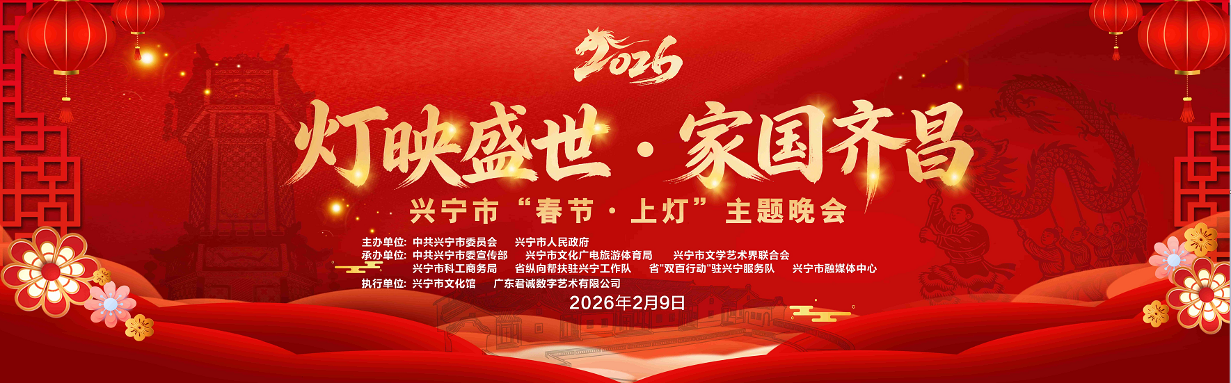掌上梅州讯 记者了解到,2月9日晚,兴宁市2026年“春节·上灯”主题晚会将在明珠文化广场隆重举行。作为“上灯+”系列活动的重头戏,本场晚会以“灯映盛世·家国齐昌”为主题,旨在通过文艺展演呈现一场融合传统民俗与现代审美的文化盛宴。