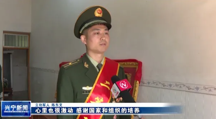 【立功军人 陈东文:这次获此殊荣,我内心感到非常荣幸,心里也很激动。感谢国家和组织的培养,感谢首长关心指导,还要感谢家人和各位乡亲父老的支持和鼓励;奖励既是鼓励,更是鞭策,前途漫漫,唯有奋斗。接下来,我将以更加昂扬的斗志、更务实的作风,不忘初心、牢记使命,继续前行,再建新功。】