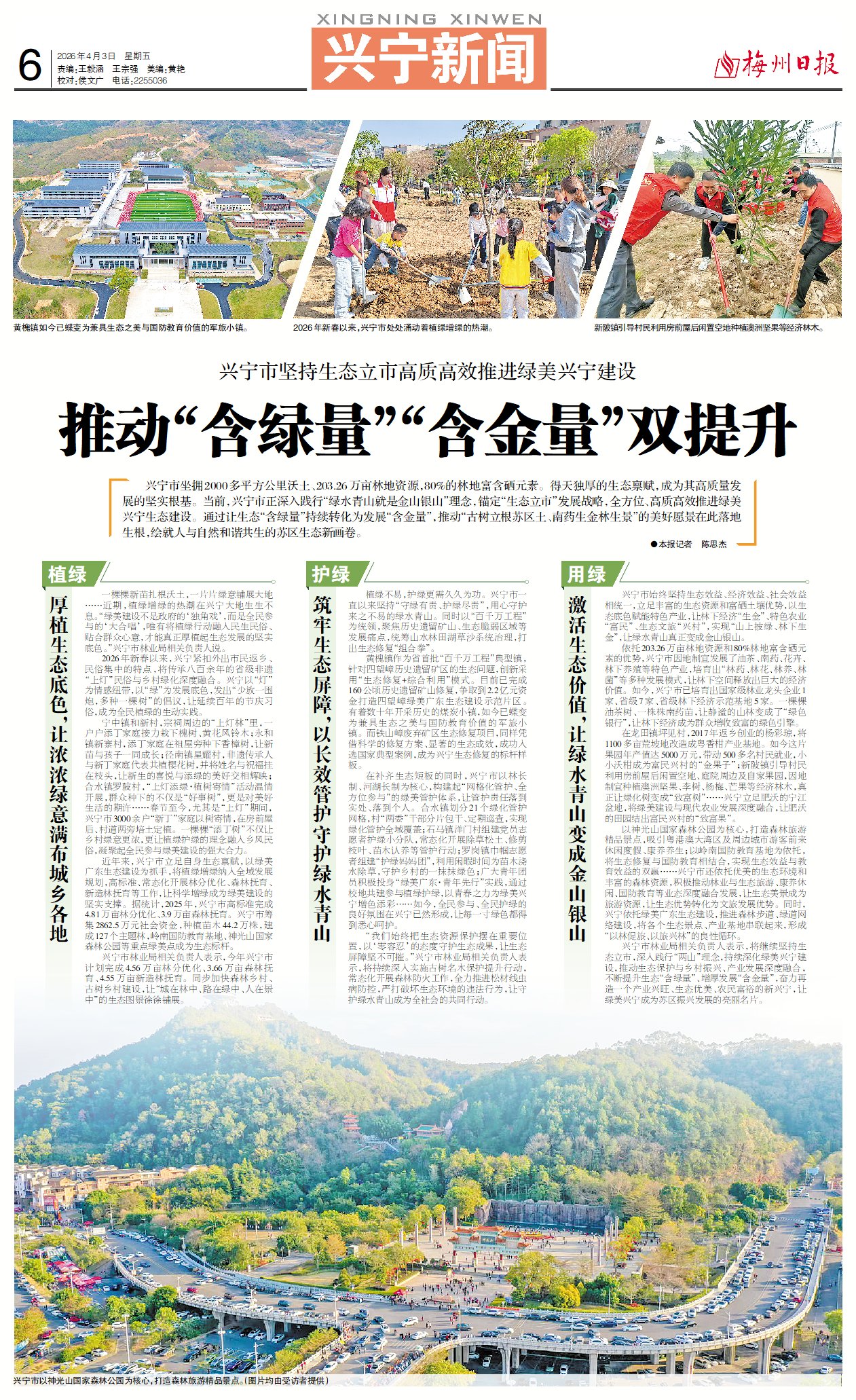 一棵棵新苗扎根沃土,一片片绿意铺展大地……近期,植绿增绿的热潮在兴宁大地生生不息。“绿美建设不是政府的‘独角戏’,而是全民参与的‘大合唱’,唯有将植绿行动融入民生民俗、贴合群众心意,才能真正厚植起生态发展的坚实底色。”兴宁市林业局相关负责人说。