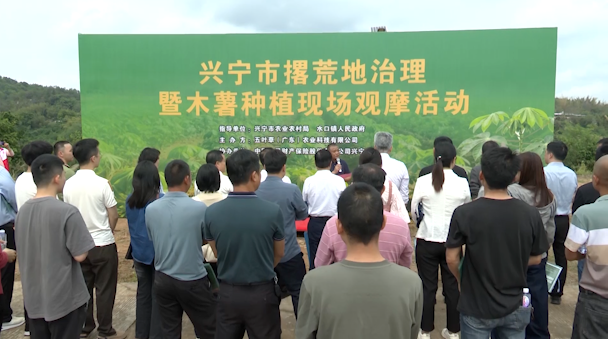 近日,兴宁市在水口镇河口村举行撂荒地治理暨木薯种植现场观摩活动。广东省农业科学院、梅州市农业农村局、兴宁市农业农村局、广东省食品进出口集团有限公司、广东省粤食进出口商品有限公司、五叶草(广东)农业科技有限公司、各镇(街)分管农业负责人、已合作及有合作意向各村负责人等到场观摩。