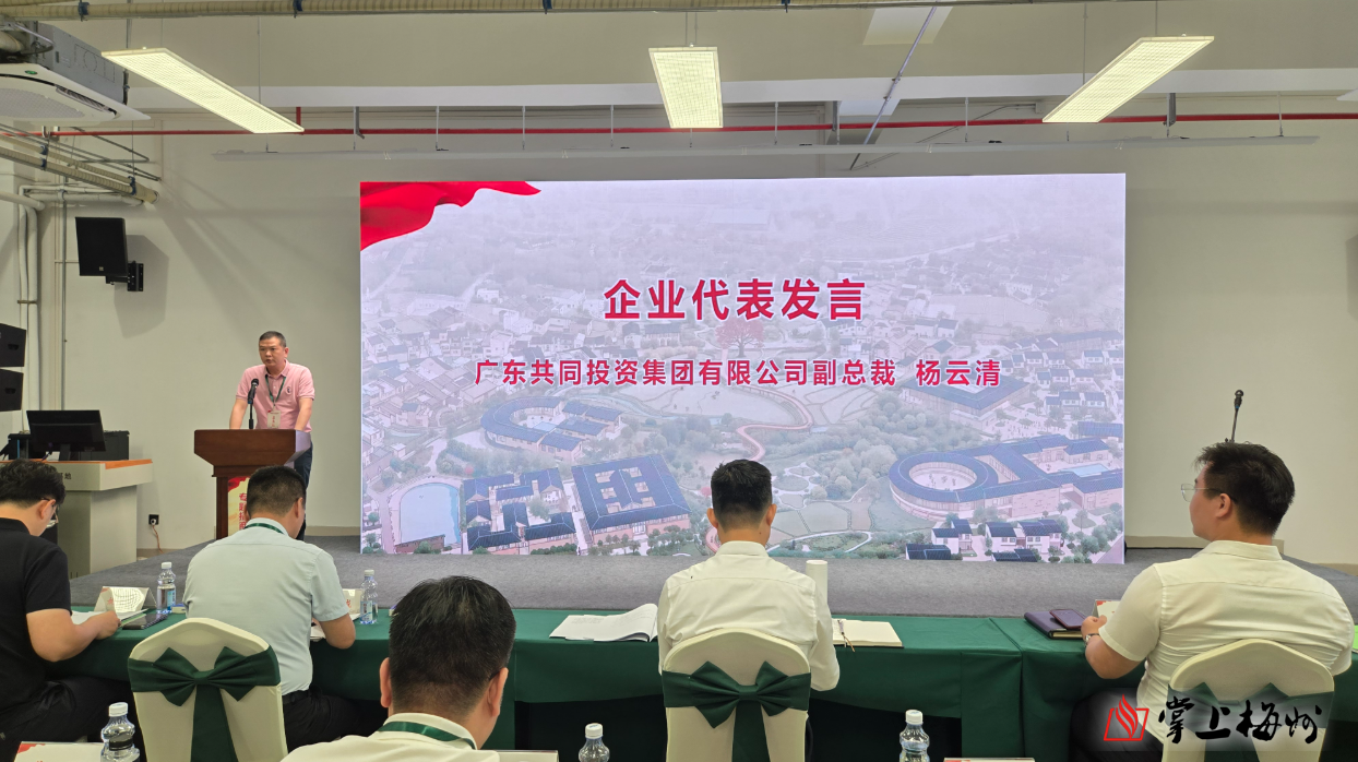 在企业发言环节,广东旅控兴邦文旅公司负责人首先介绍了基地运营发展现状和需求,接着广东共同投资集团、广州成至智能、广东金绿农业集团、梅州市来登望餐饮4家企业代表先后上台。他们围绕文旅全链条开发、无人机国防科技应用、高端军旅民宿投资等方向分享合作意向,表达了深耕兴宁、扎根黄槐的坚定信心,展现出强劲的投资热情与合作共识。