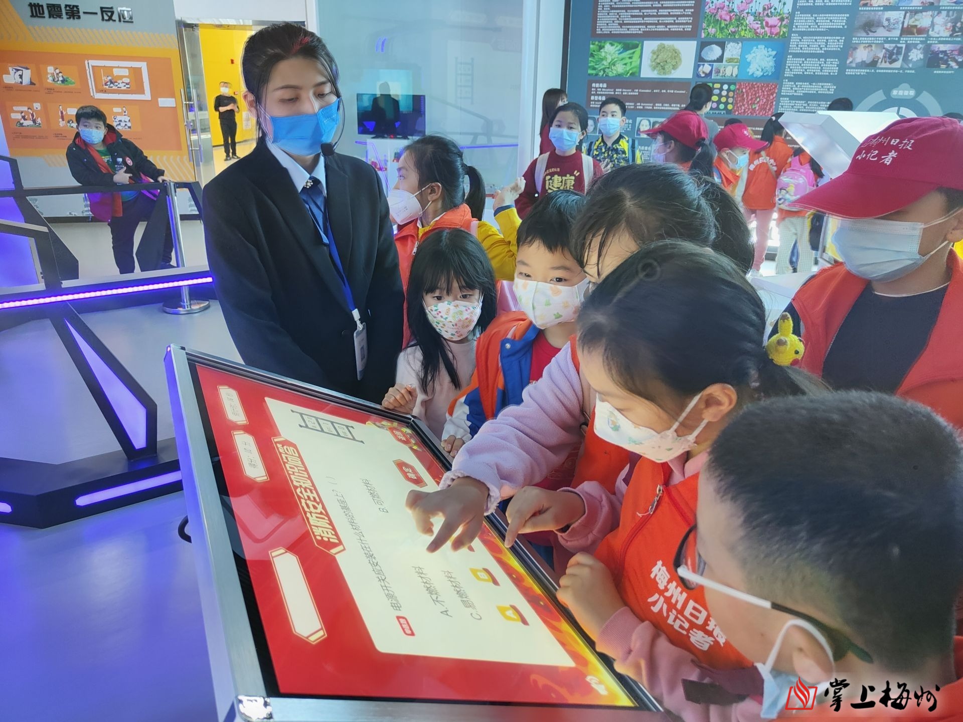 小记者在梅州市科学技术馆体验消防安全知识问答机。
