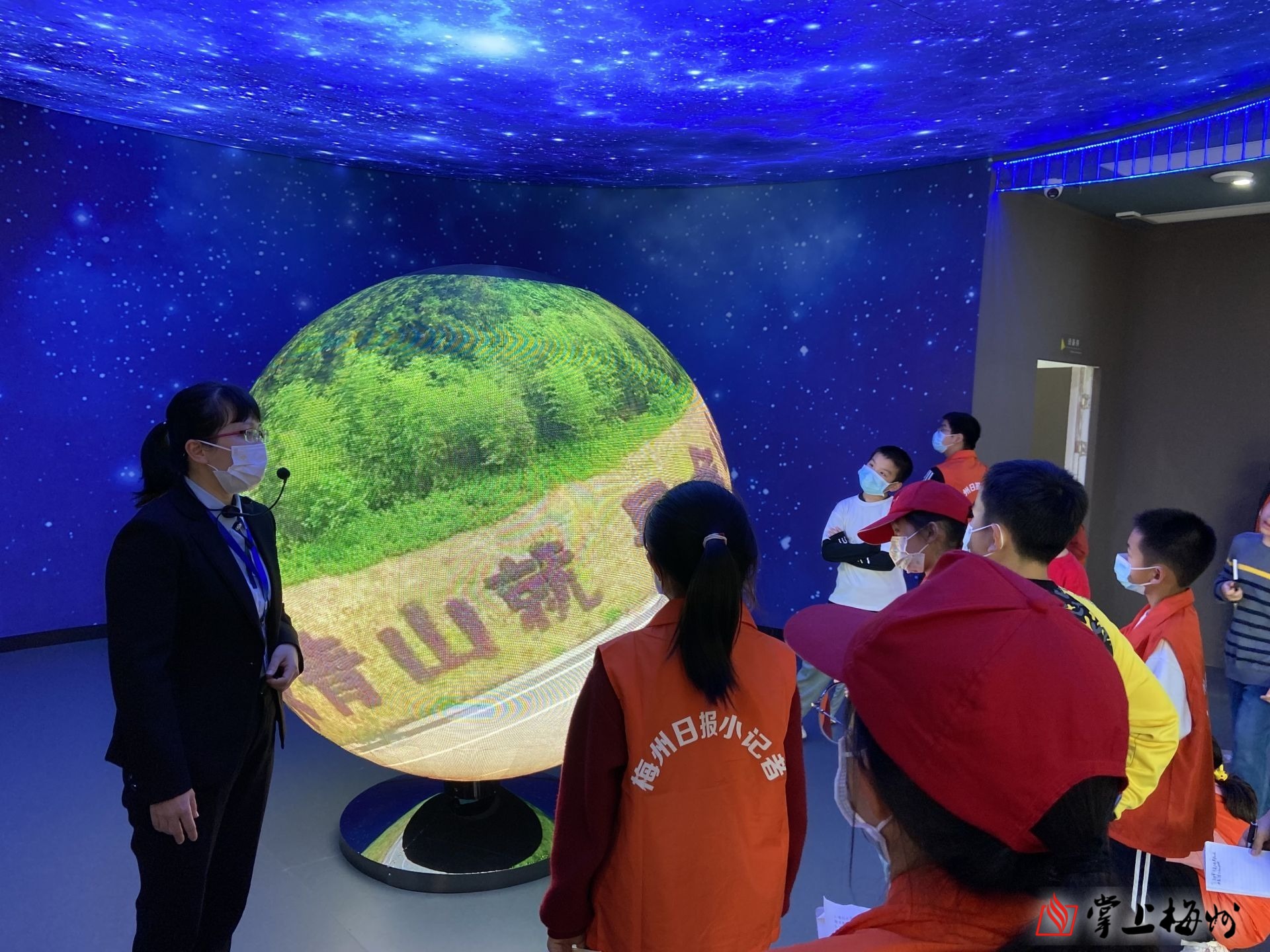 小记者在梅州生态文明体验馆参观地球模型。