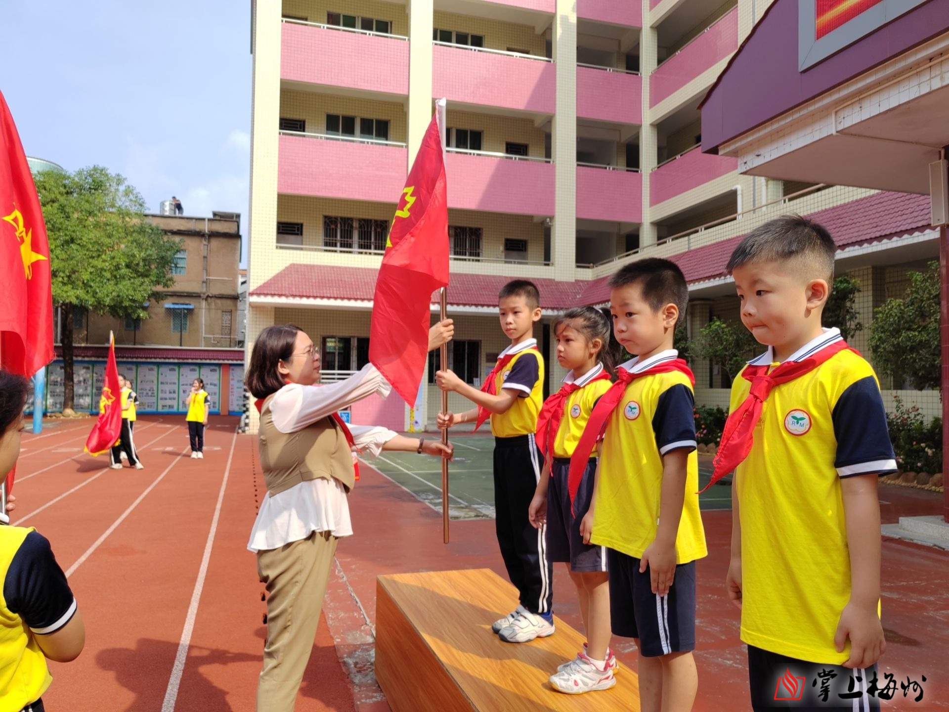 梅江区人民小学举行新队员入队仪式(学校供图)