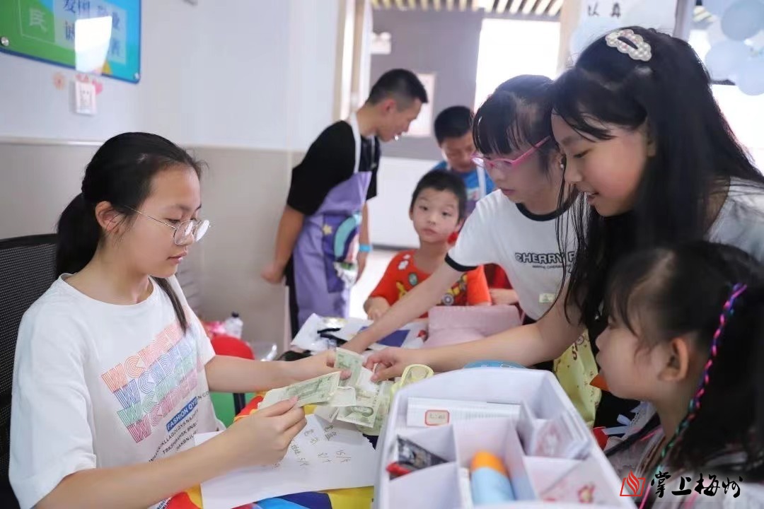 在梅州市外语实验学校,教学楼被“改造”成大型超市,40个由各班学生“经营”的商铺在“六一”当天开门营业。秉承着“一室一特色,一室一文化”的宗旨,各个商铺精心设计商铺名称、海报样式等,并在铺内摆满了各色零食、书籍、花草、玩具等物品,各商铺人头攒动,孩子们的吆喝声不绝于耳。