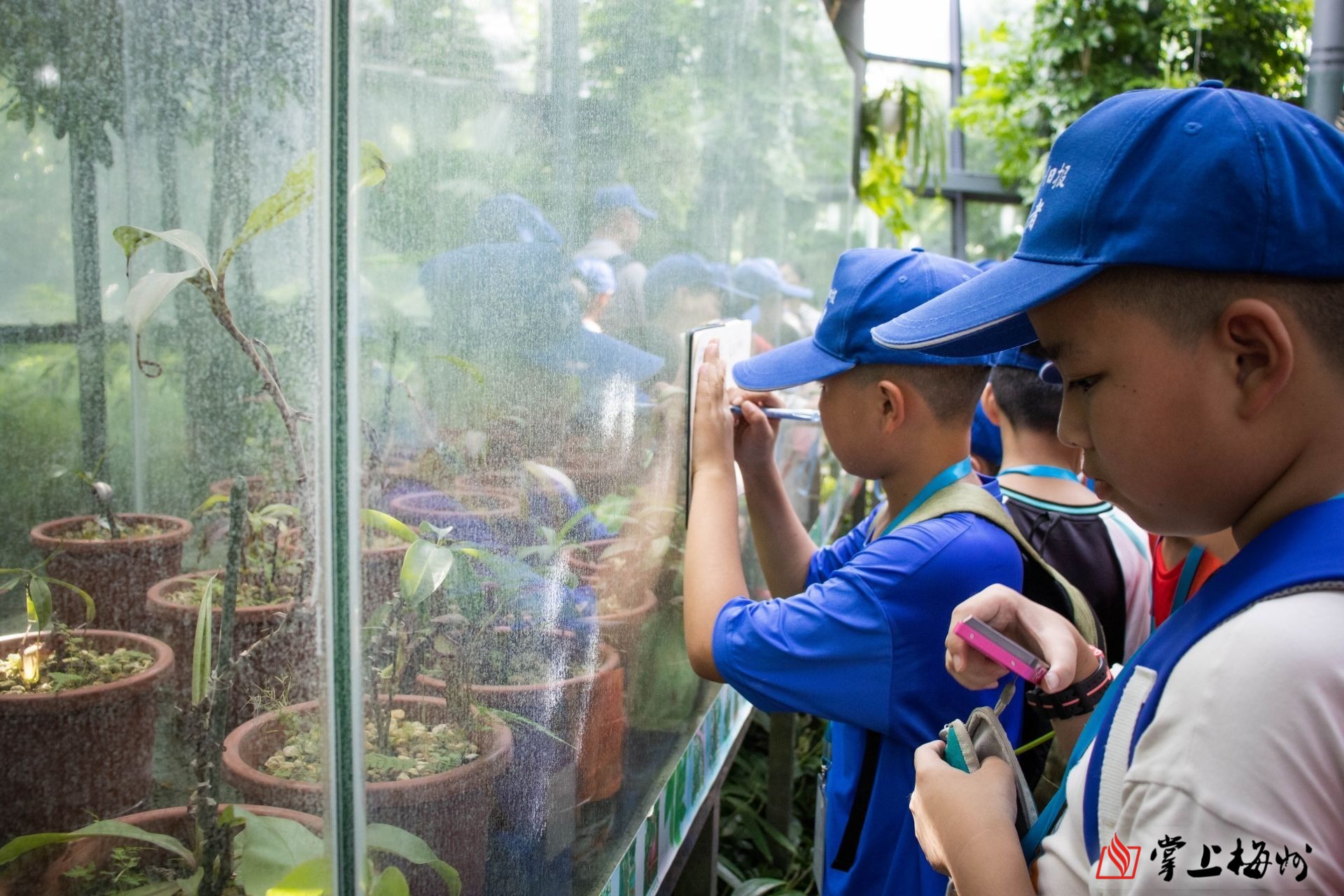 小记者们围在珍稀植物下学习。