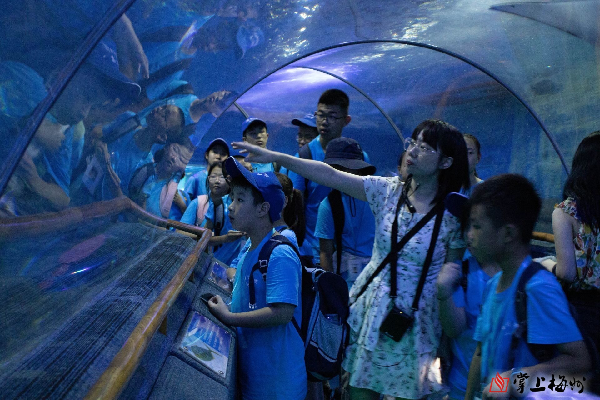 讲解老师带领小记者游览海底世界。