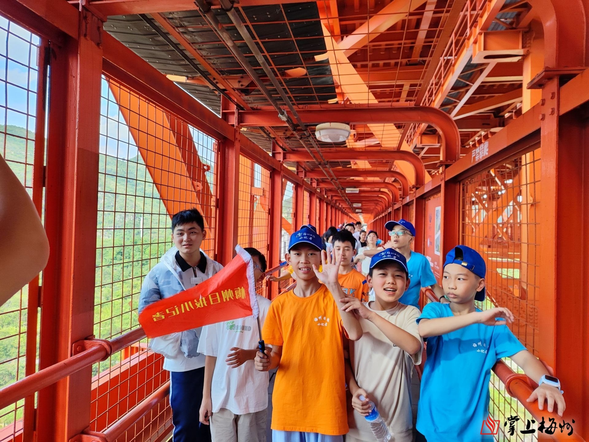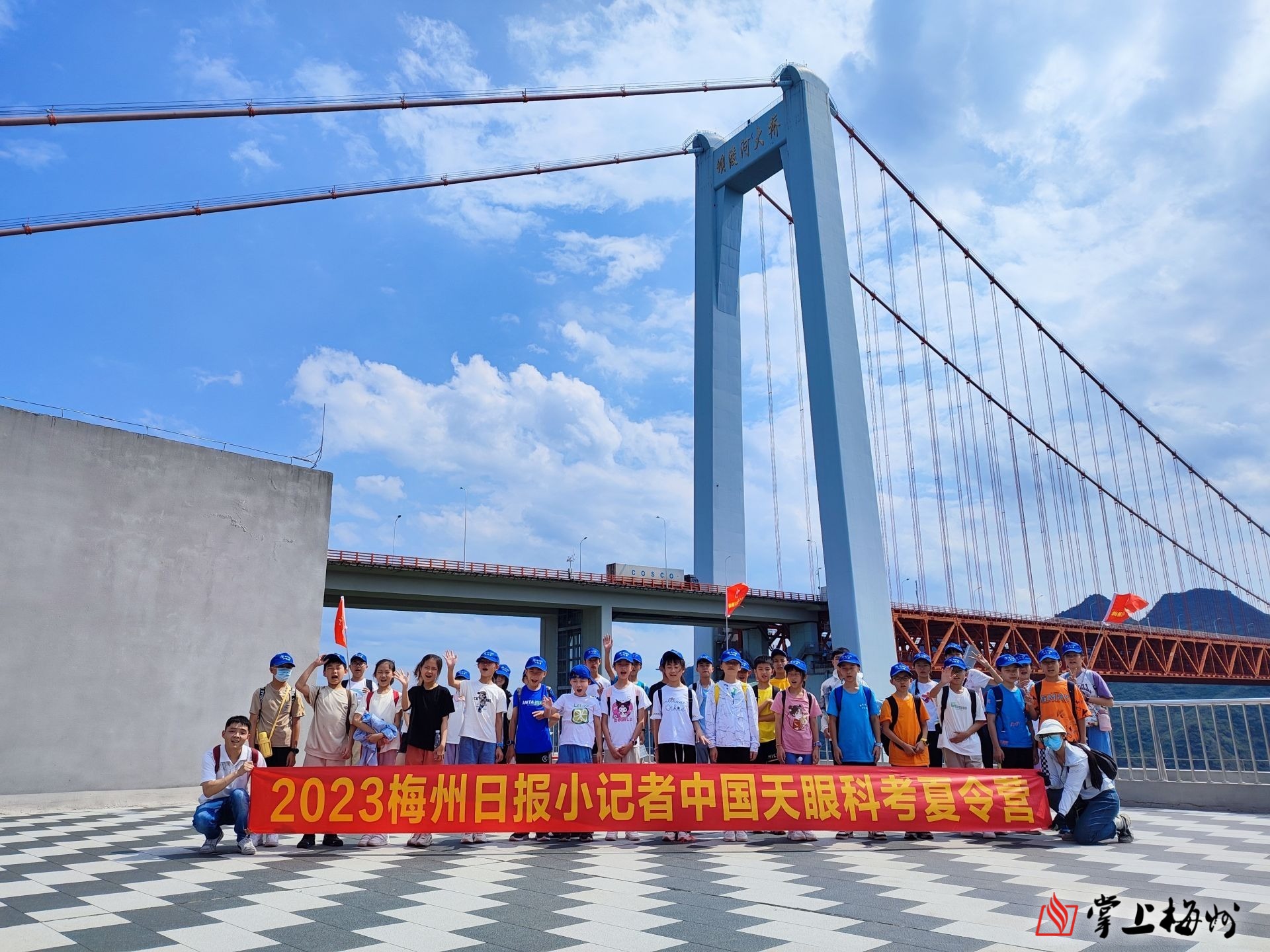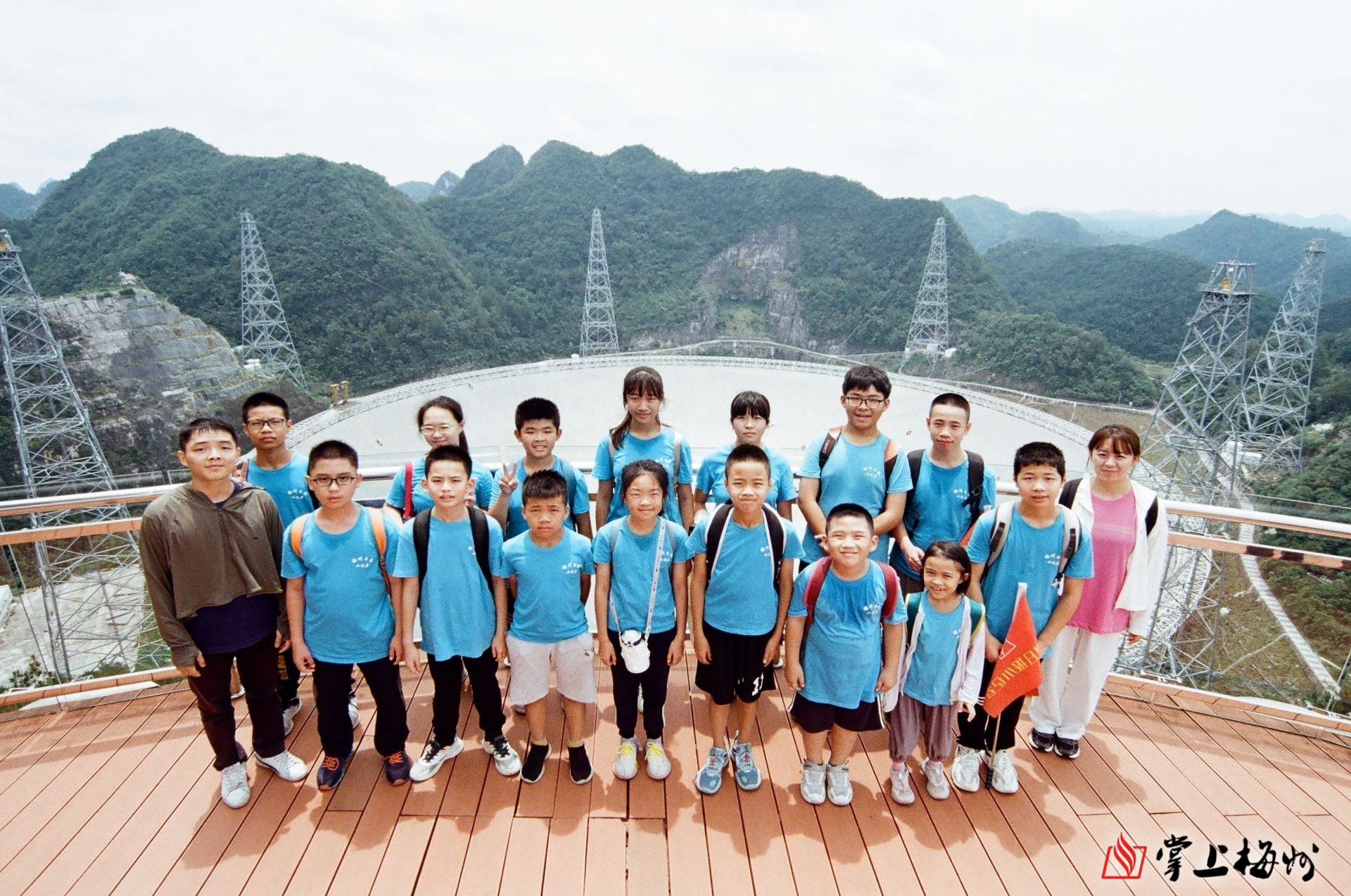 梅州日报小记者参观“中国天眼”并合影留念。(李宇凡 摄)