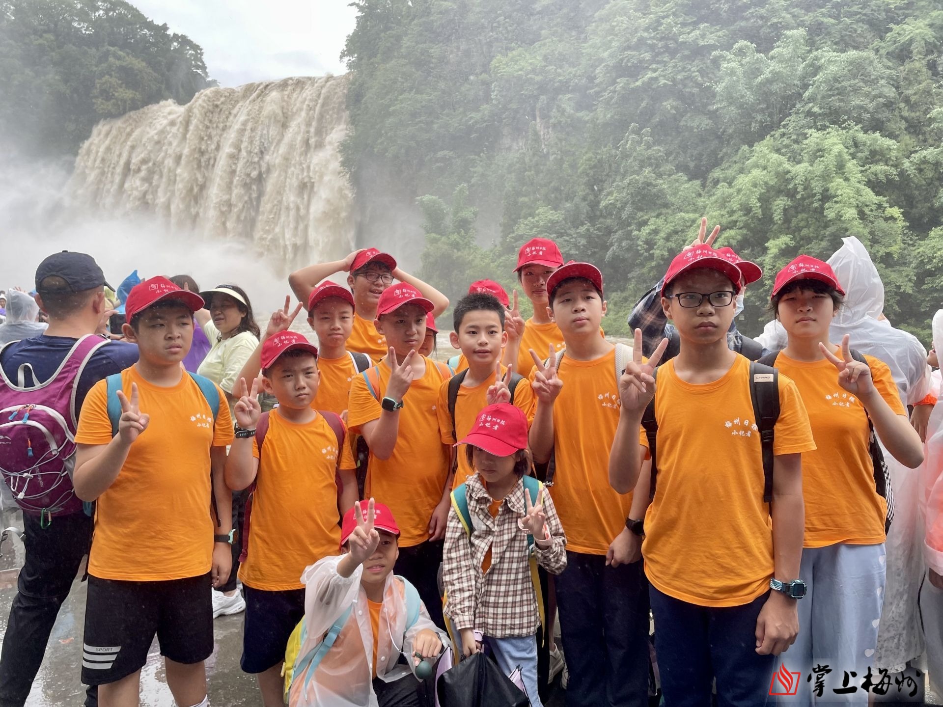 梅州日报小记者到达黄果树瀑布景点。(李宇凡 摄)