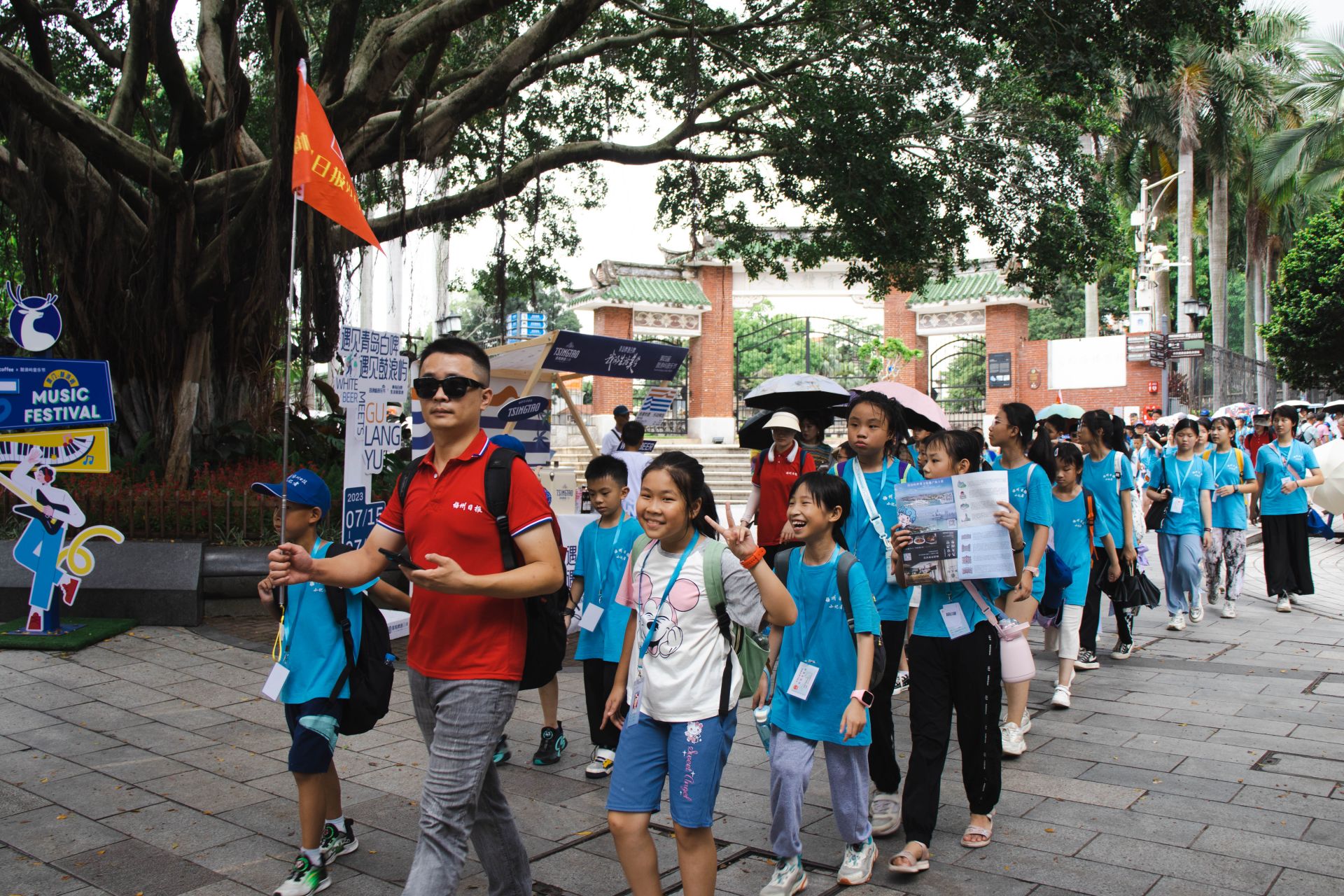 梅州日报小记者在老师带领下登岛游览参观鼓浪屿。 (罗晨宇 摄)